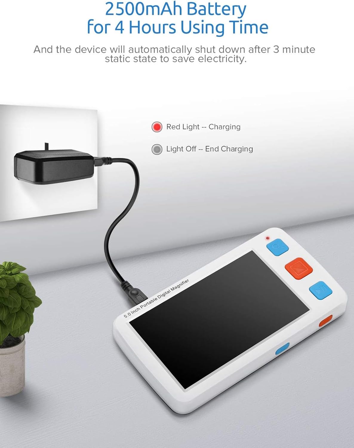Review: I got this device for my aunt who has macular degeneration about three years ago. She used it very oftern, so much that recently the battery began to hold less of a charge. I contacted eyoyo about a replacement battery, and they were very helpful. I went ahead and bought two, because I knew how much my aunt had come to depend on the magnifier, and I didn’t want her to be without it. This is well made and easy to use, and the price is still almost the same as when I got it, unlike most items I have to buy today. I would definitely buy it again, and I probably will when my sight gets to that point in not so many years.