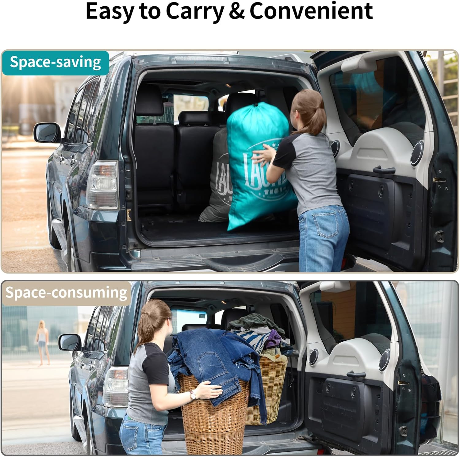 Easy to Carry & Space-saving: This heavy duty laundry bag is more convenient than a laundry basket for carrying up and downstairs or taking clothes to the laundromat. Plus, it fits easily into car trunks without taking up much space.