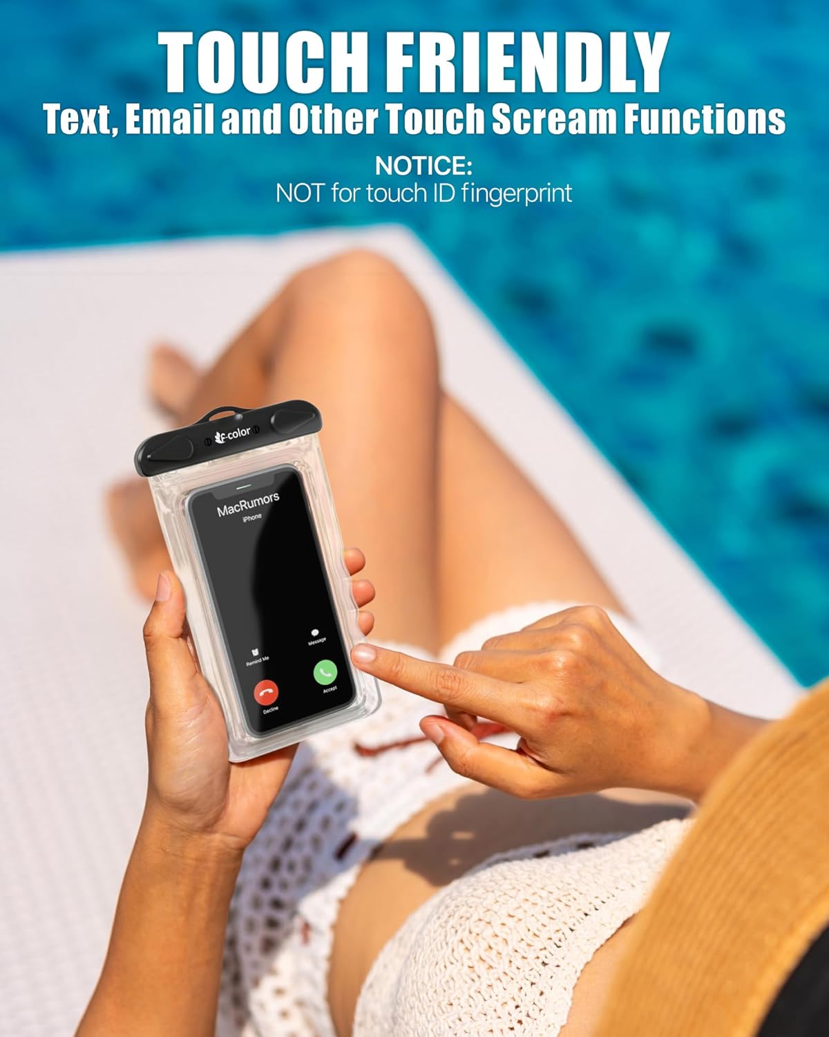Touchscreen Friendly Design: Text, snap photos, or answer calls through the crystal-clear PVC window; Works effortlessly underwater for capturing vibrant marine life; Note: Fingerprint ID may not function; Stay connected while splashing in the waves
