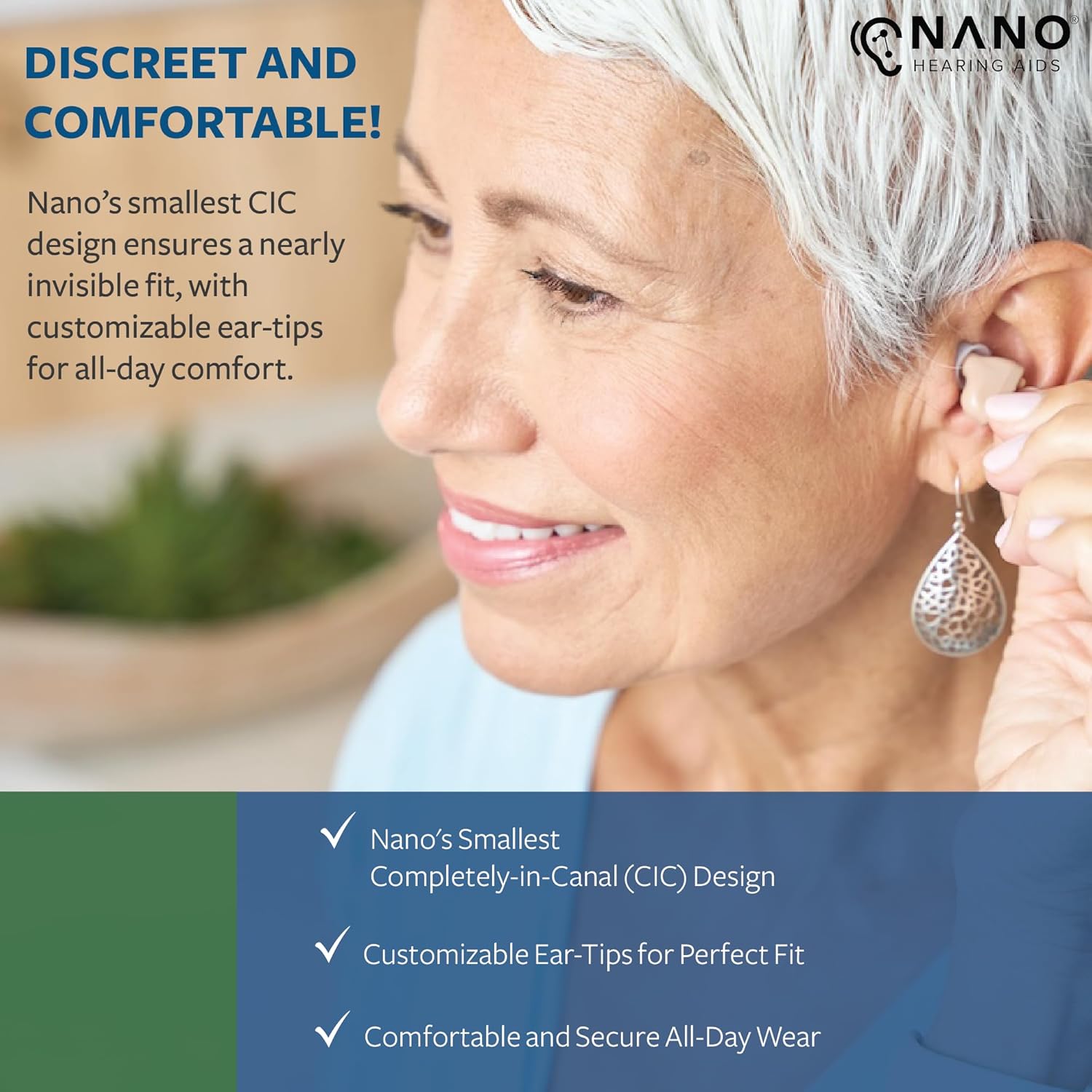B0DKDR7LFV, Experience the next level of hearing with Nano’s ALL-NEW First Ear CIC OTC Hearing Aids, designed for those seeking more from their devices. More power, more hearing, more life! Crafted for those embracing an active lifestyle and independence, our advanced aids offer features that cater to your specific needs. With superior functionality, Nano’s First Ear CIC OTC Hearing Aids help you do more and take your hearing to the next level. Experience the freedom of nearly invisible hearing aids! Our discreet design ensures that no one needs to know you’re wearing them. They rest comfortably and…, 1, , Health & Household > Medical Supplies & Equipment > Mobility & Daily Living Aids > Hearing Aids, Amplifiers & Accessories > Hearing Aids, #Ear #CIC #Completely #Canal #Rechargeable #Hearing,