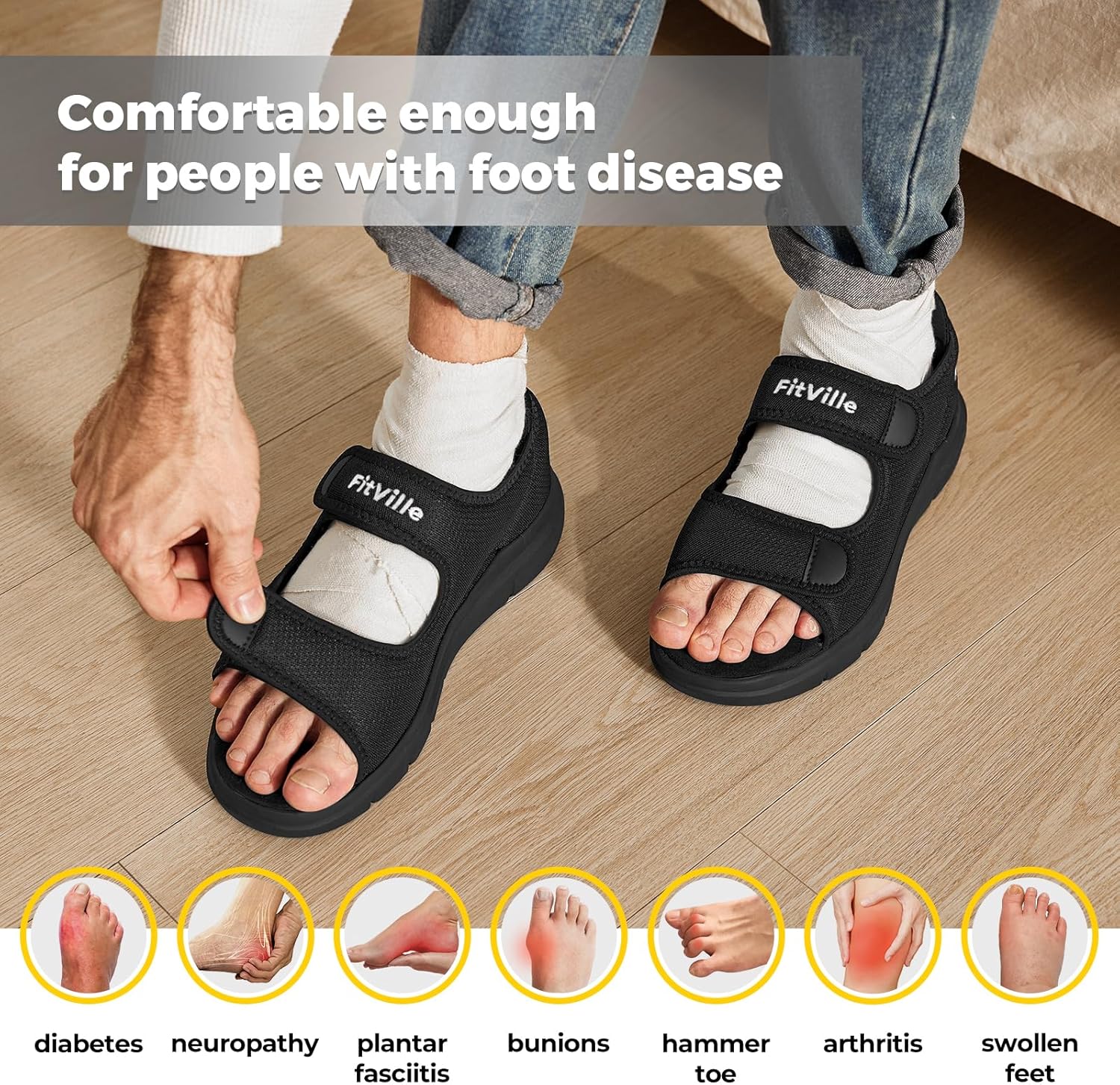 FitVille Diabetic Sandals for Men Wide Width with Arch Support, Men Diabetic San…