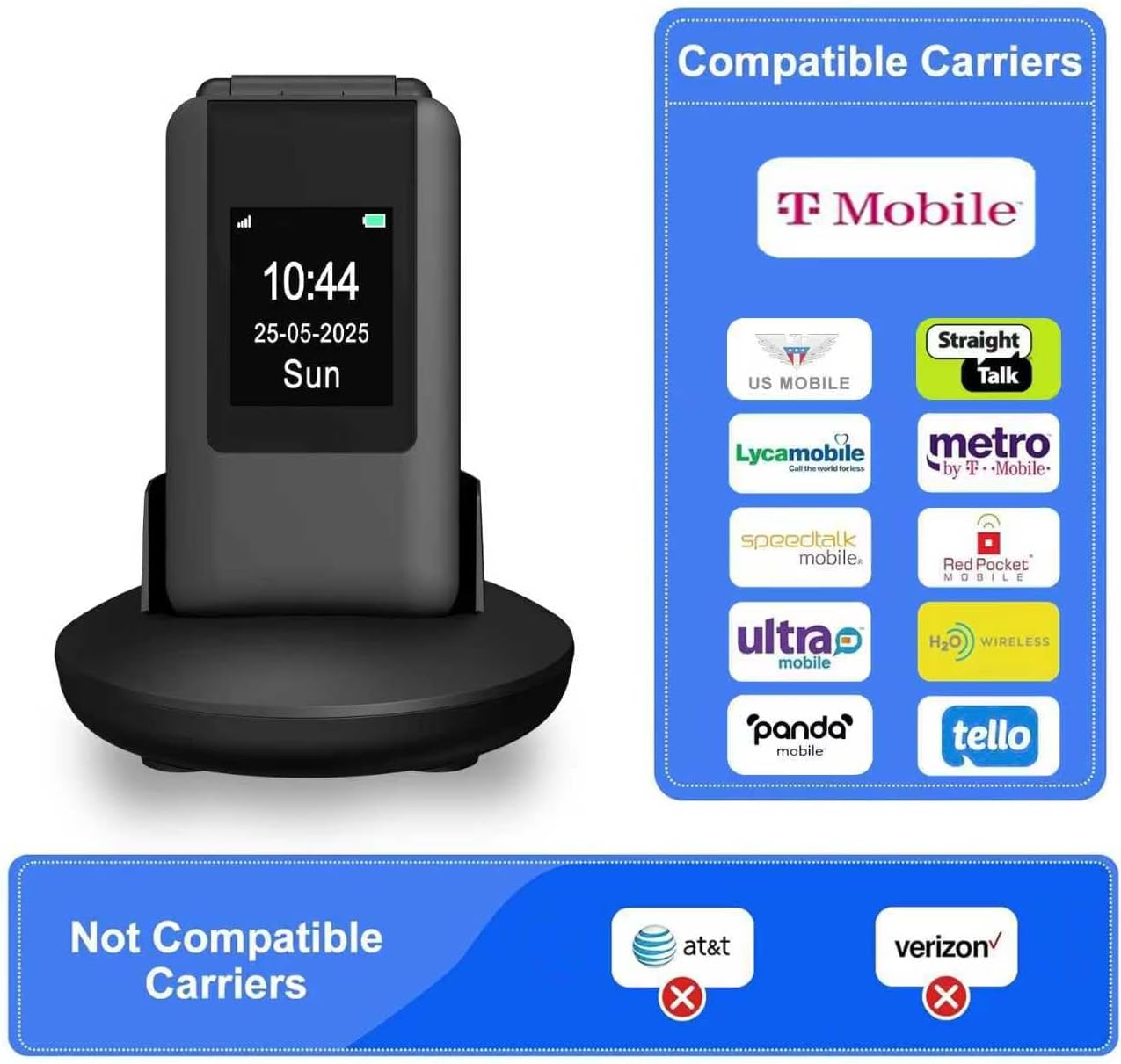 Review: I bought this as a backup phone and it’s perfect. Battery lasts forever, and the charging dock is so convenient. It’s unlocked for T-Mobile and works flawlessly. Simple, reliable, and does exactly what I need.