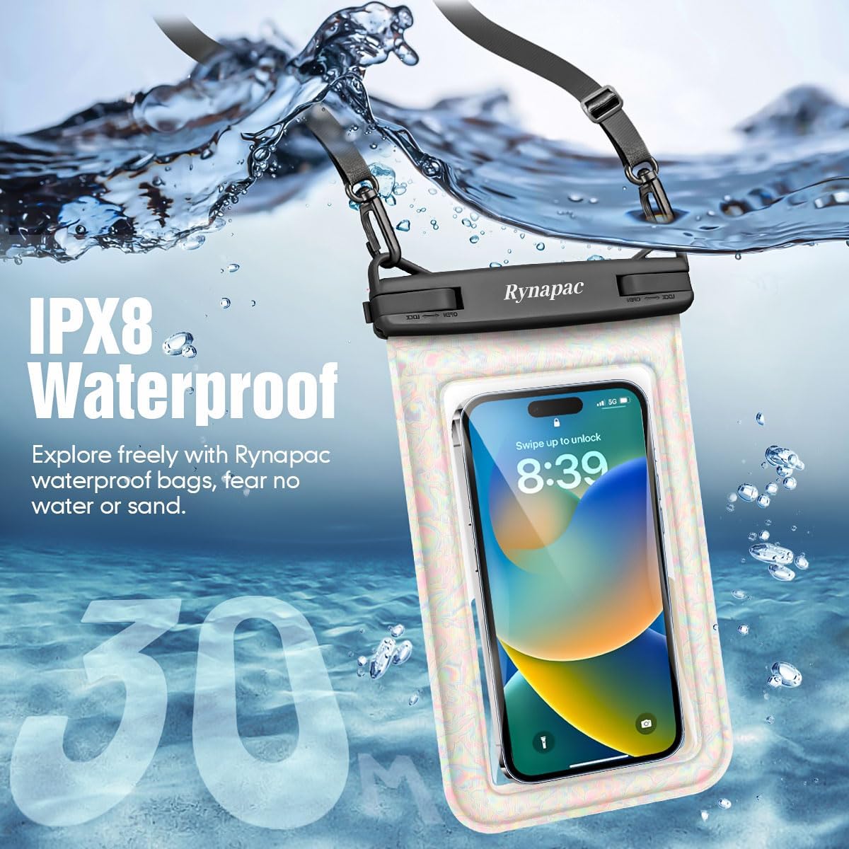 【IPX8 Waterproof Rating】- Rynapac's three-layer lock-down technology ensures certified IPX8 waterproofing, delivering comprehensive protection for the waterproof phone pouch against water, snow, dust, and sand. whether you're embarking on a cruise vacation or enjoying a sunny beach trip, A reliable waterproof phone bag is a travel essential