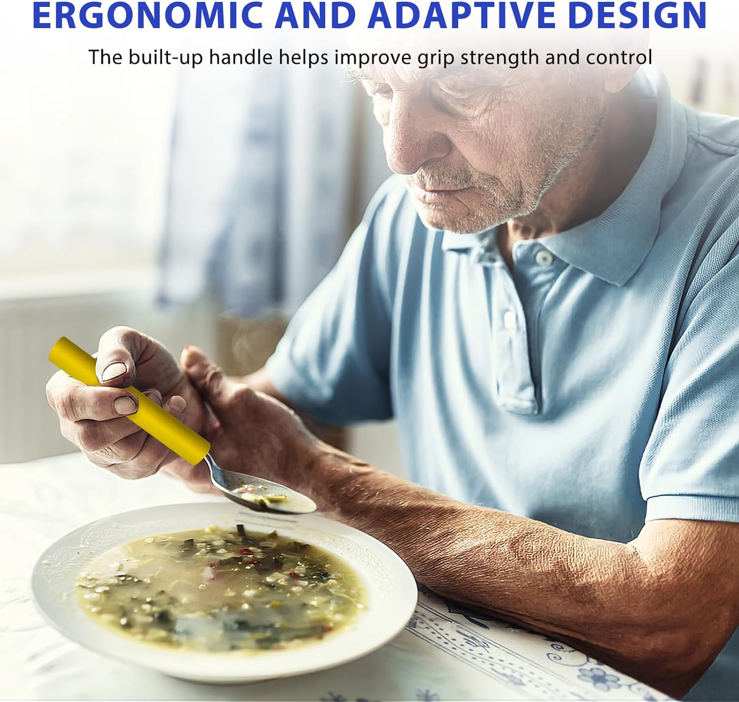 Review: Absolutely perfect. Helped my husband gain independence with eating and writing. Various thicknesses (inner diameter) to accommodate different size implements. Light weight hardly notice a difference. Easy to cut to size and portable. Easy to pull utensil out for cleaning or changing to something different.