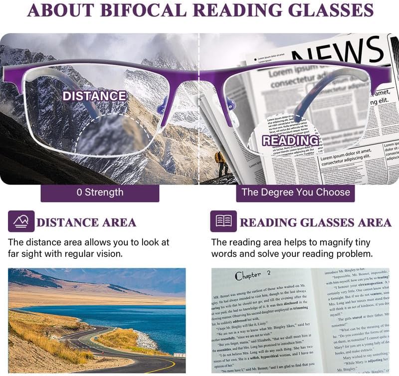 , Health & Household > Vision > Reading Glasses, #FONHCOO #Bifocal #Reading #Glasses #Women #Men #Metal #Frame #Blue #Light #Block..,