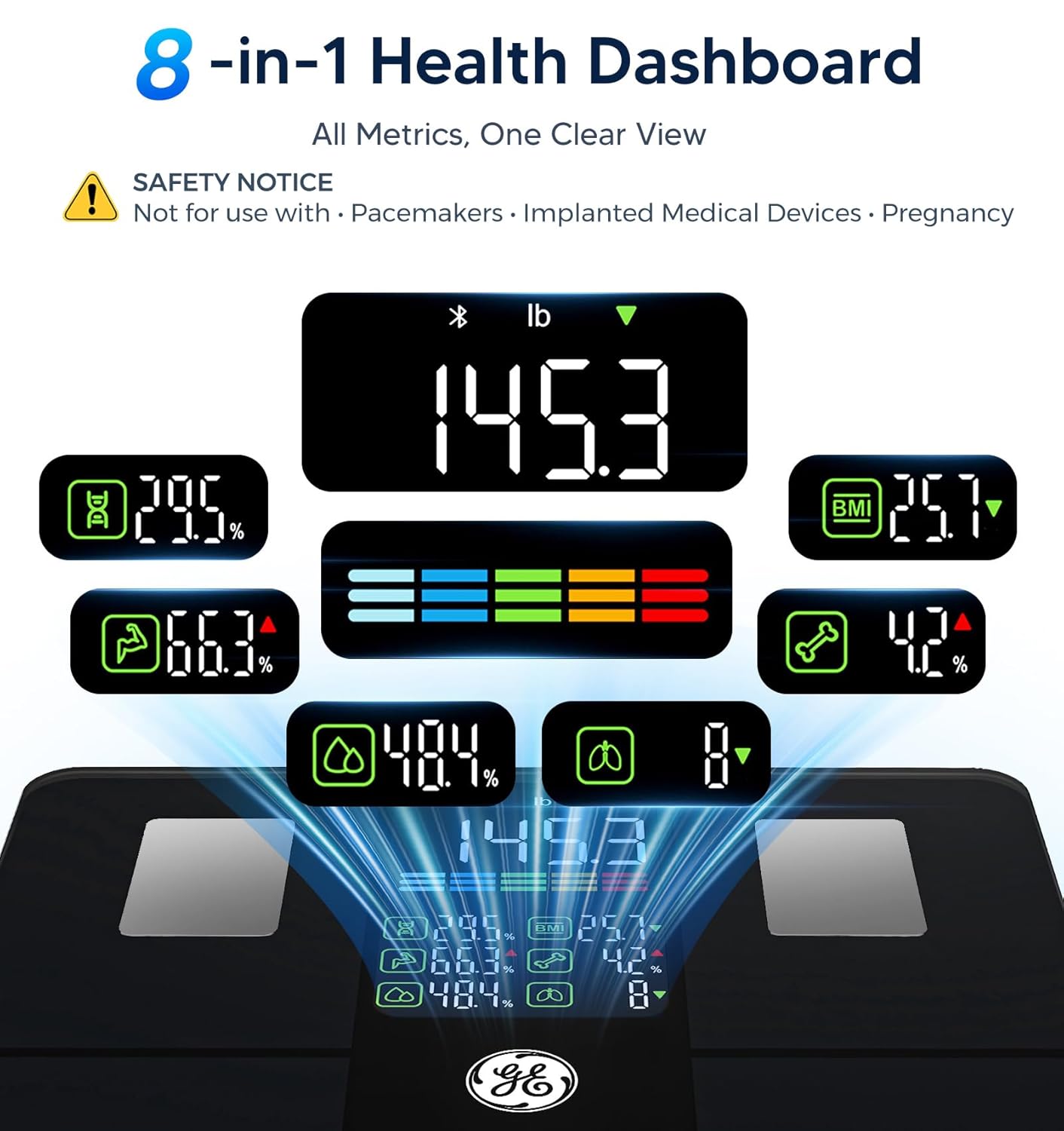Review: Amazing Smart Scale Review – A Game Changer for Health Tracking!I can’t say enough good things about this smart scale! From the moment I set it up, it completely transformed the way I track my health and fitness. Setup was super quick—just download the app, connect via Bluetooth, and you’re good to go in under 2 minutes!Accurate Weight Tracking: It gives consistent and precise readings every time I step on it.Full Body Composition: Beyond weight, it tracks body fat %, muscle mass, bone density, water weight, BMI, visceral fat, metabolic age, and more. It’s like having a mini health lab at home!Progress Visualization: The app shows trends and graphs that help me stay motivated. Watching my numbers improve over time is so rewarding.Multiple Users: My whole family uses it! It automatically recognizes who’s on the scale and keeps each profile separate.Sleek Design: It looks modern and stylish in my bathroom. The glass platform feels high-quality and sturdy.This smart scale is more than just a weight tracker—it’s a full-body insight tool. Whether you’re on a weight loss journey, building muscle, or just want to stay healthy, this scale gives you the data you need to succeed. Highly recommend it for anyone serious about their wellness goals!⭐️⭐️⭐️⭐️⭐️ 5/5 – A must-have health companion!
