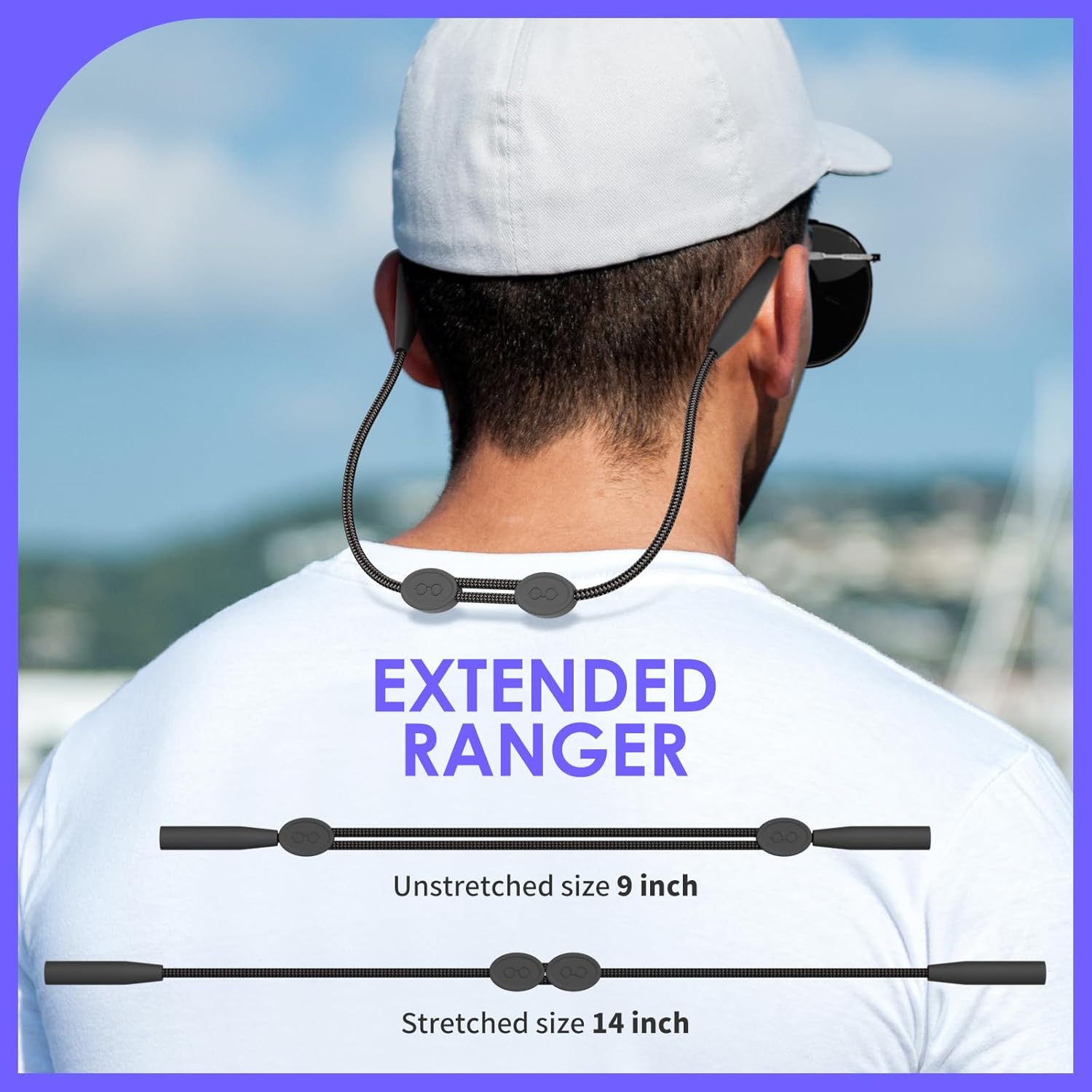 Imported Silicone Elastic Material – Eyeglass strap total length is approximately 14 inches, (fits eyeglass temples between 5mm-12mm in width) Fits most sunglasses, reading glasses, nearsighted glasses, presbyopes, and the glasses holder fits most people