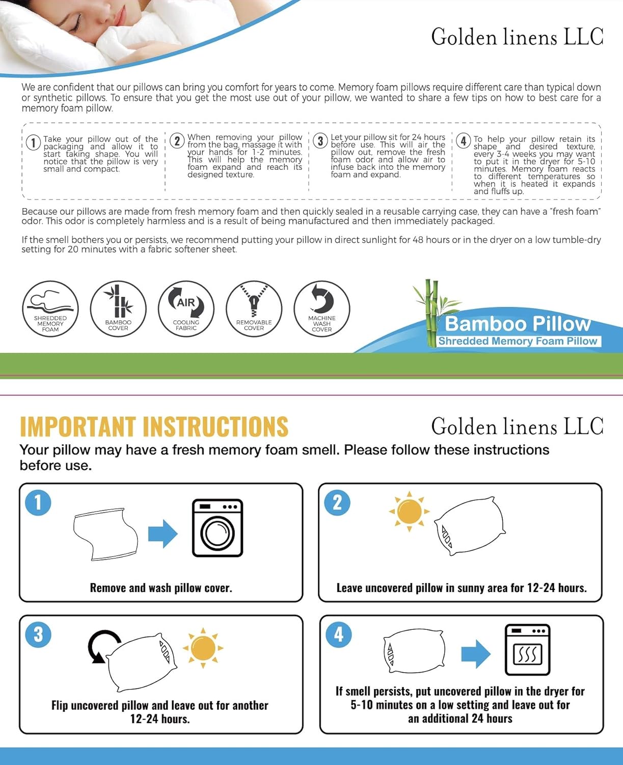 Goldenlinens Pillow Memory Foam – Stay Cool Removable Cover …