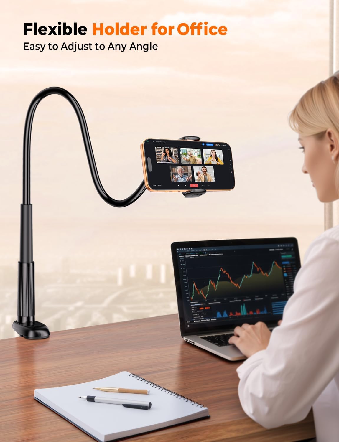 Review: This is a very sturdy holder. Bought it to hold my phone on my side so I can scroll thru stuff when working, stay in place and don’t sag when in use. I am using a iPhone 15 pro max which is pretty heavy.