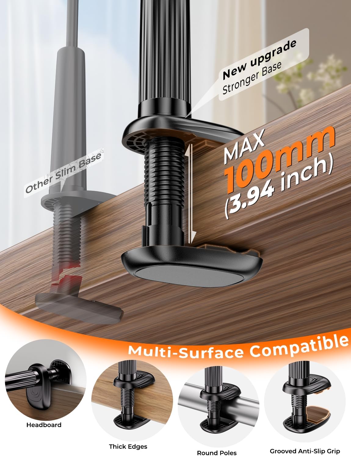 Review: Got it to use with my smooth round metal frame bed, and it takes a LOT of tightening to get it to stay. The first time I did so though, I tightened it too much, and it got stuck. I had to get my dad to pull it off and thankfully it didn’t damage the holder or my bed lol. NOT easy to bend the arm which will make it durable and stay up well, but it’s definitely not for a small weak-armed person if you want to change the position often, and you have to bend it at least once to set it up. The black doesn’t show dust much so far which I like (have had it out 3-ish weeks?), and it’s a long arm which is good because for this type of product you need to bend it into a shorter squiggle shape or something to stay upright, and I think a shorter product would leave me feeling cramped up by the head of the bed. It’s decently heavy, so not super easy to carry it around as something “portable” like in a bag on a trip, but I like its sturdiness—I’m thinking it’ll last for a long time. Using it for my kindle colorsoft (have a thin clear case on it and can use my two-clip page turner with it too), but it could easily be used for an iPhone or something else not too much larger than a kindle. Would recommend if you’re going to keep it in the same place for most of your use with it and don’t want to move it around much, but want something that will likely last a long time.