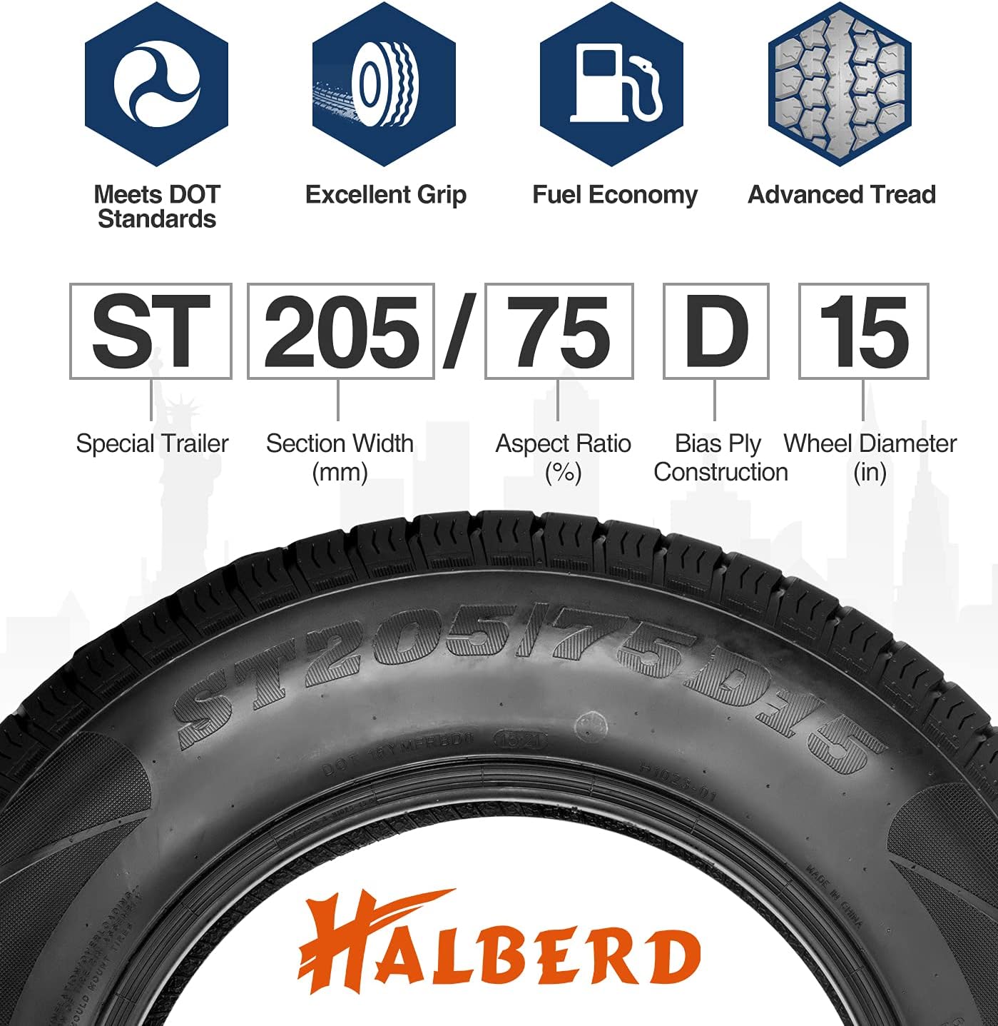 PACKAGE - HALBERD H1023 ST205/75D15 * 4. This is a tire only. Wheel is not included. Created specifically for trailers and not intended for use on other vehicles. Tire meets Department of Transportation specifications.