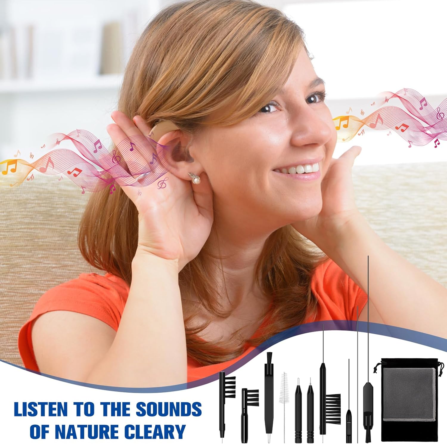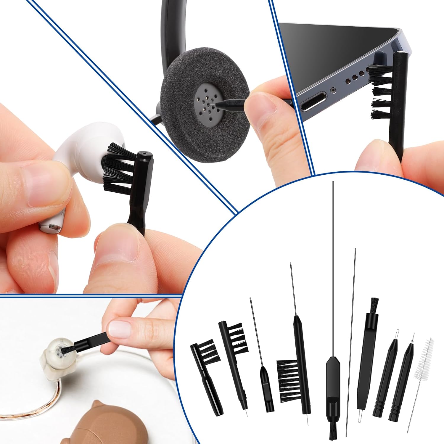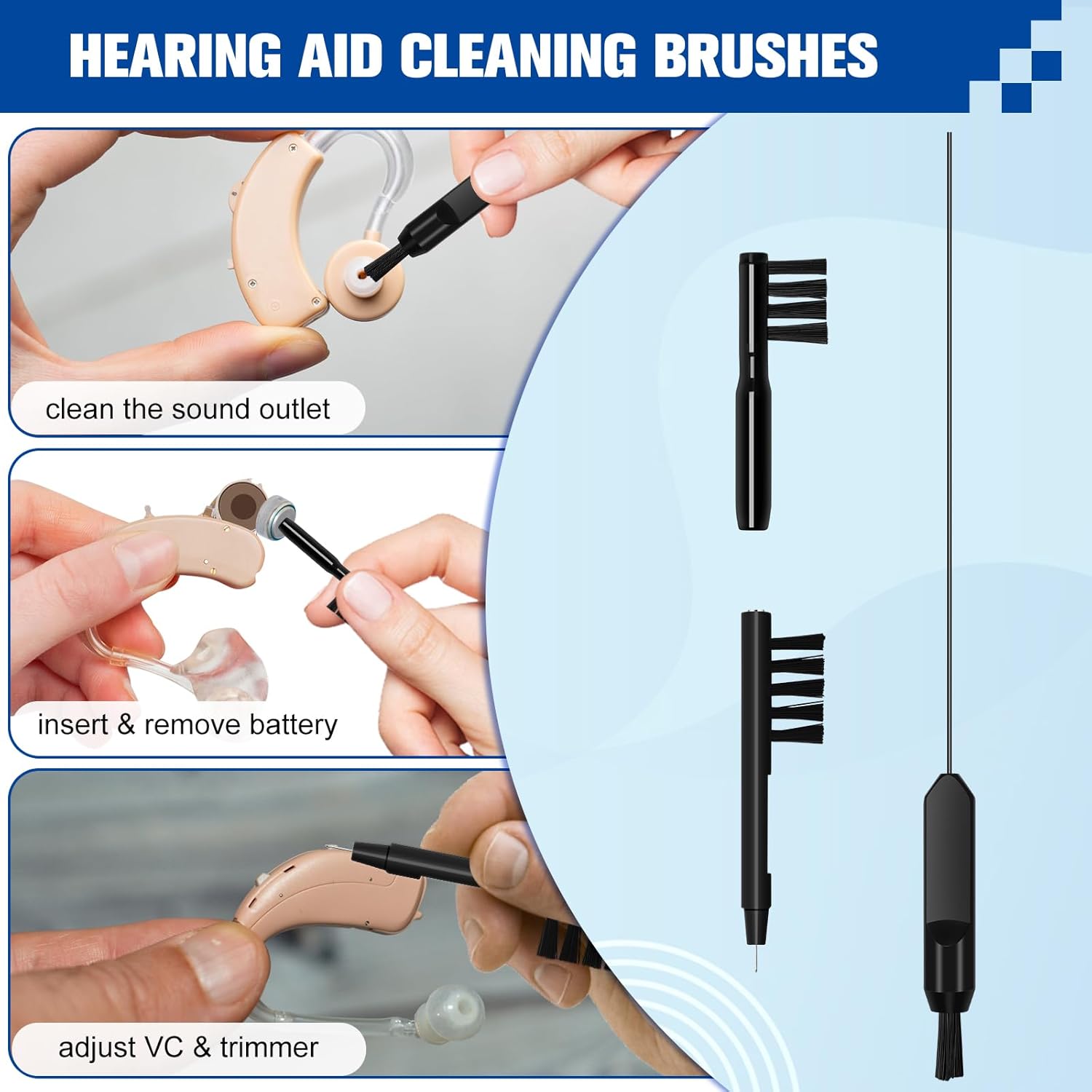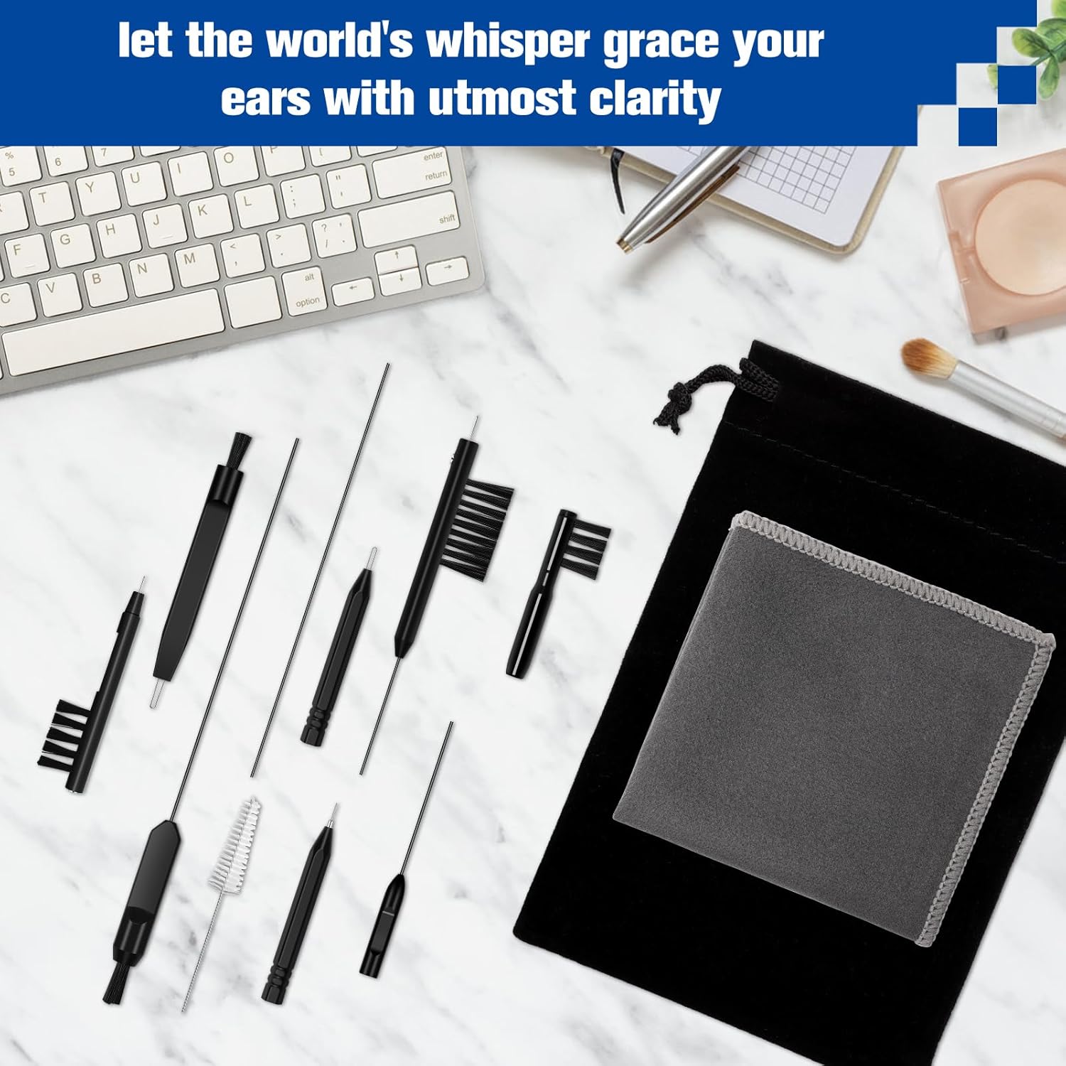 Review: Great for ear phones, iPods, hearing aids and even speakers. This kit even has a nice velvet bag for storage and a soft cloth that can wipe of surfaces and other small electronic devices that you are pairing with the hearing devices. A great little set of detail cleaning tools.