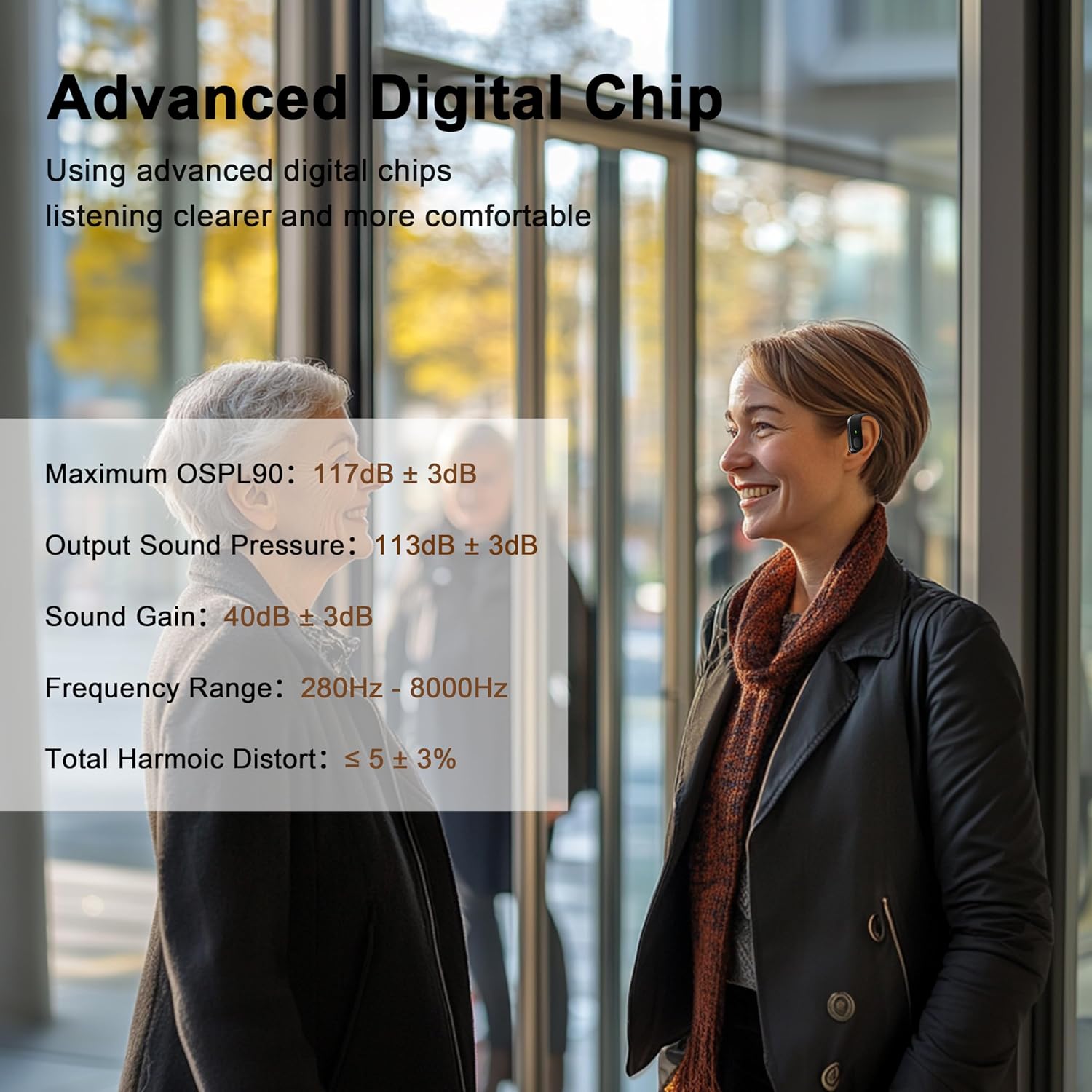 Review: I found this to not be up to product statements by seller.  It fits well.  No evidence of falling out of my ear with any movement.  It picks up background noise, making it harder to hear the sounds I want to hear.  I was listening to a movie on my laptop while sucking on mints.  This device picked up that noise.  This also does not filter out background noise, making it louder than conversations nearer to me.  Plus, the lowest letting on volume is, IMHO, too loud.