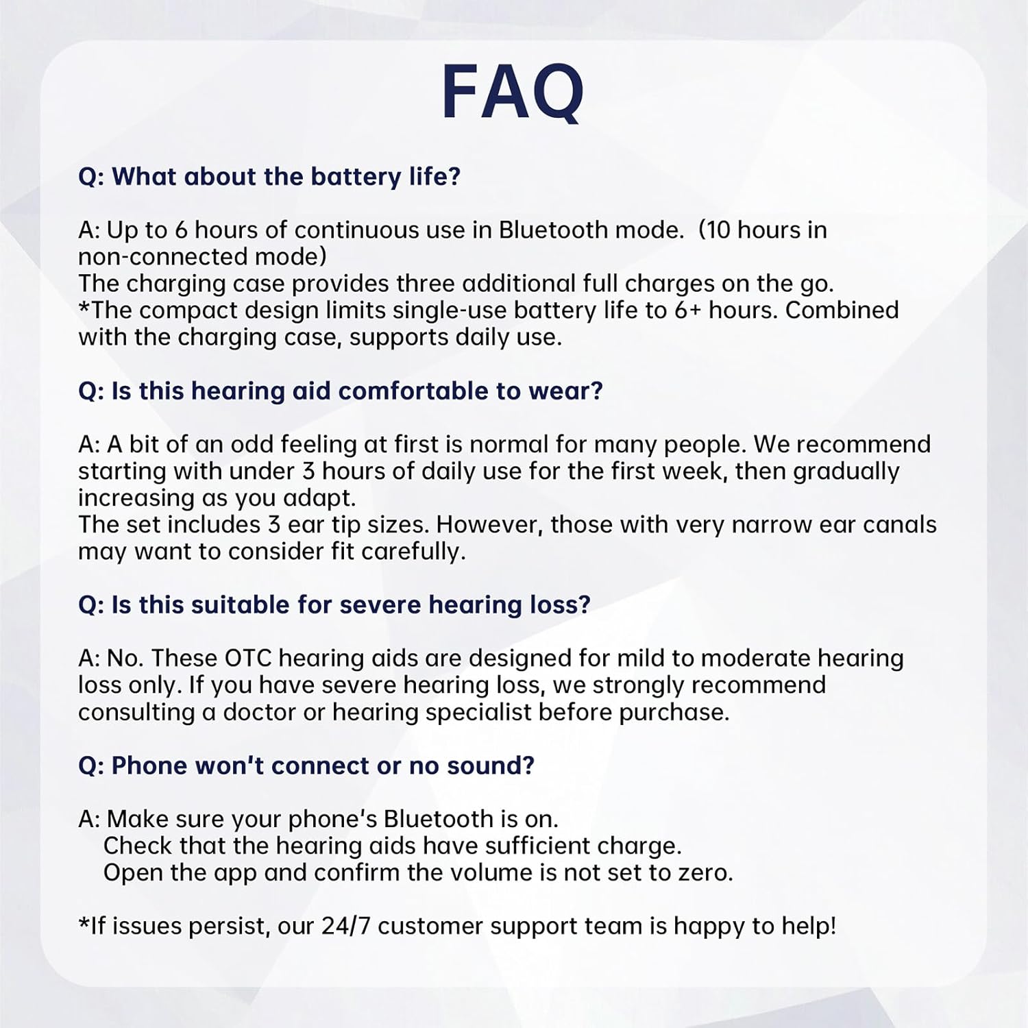 Review: These premium hearing aids changed my life! They deliver clear, natural sound with no static, and the adjustable volume fits all environments. Ultra-lightweight, I wear them all day with no discomfort. Easy to charge and long-lasting battery—finally, I can hear every conversation clearly again!