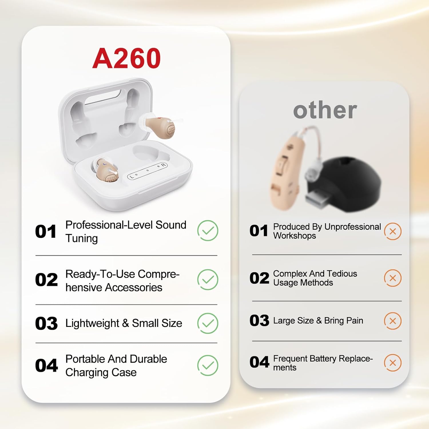 Review: These are so small and light, no one even notices I’m wearing them! The rechargeable battery lasts through busy days, and the noise cancellation makes music and movies enjoyable again. A must-have for anyone with hearing loss.