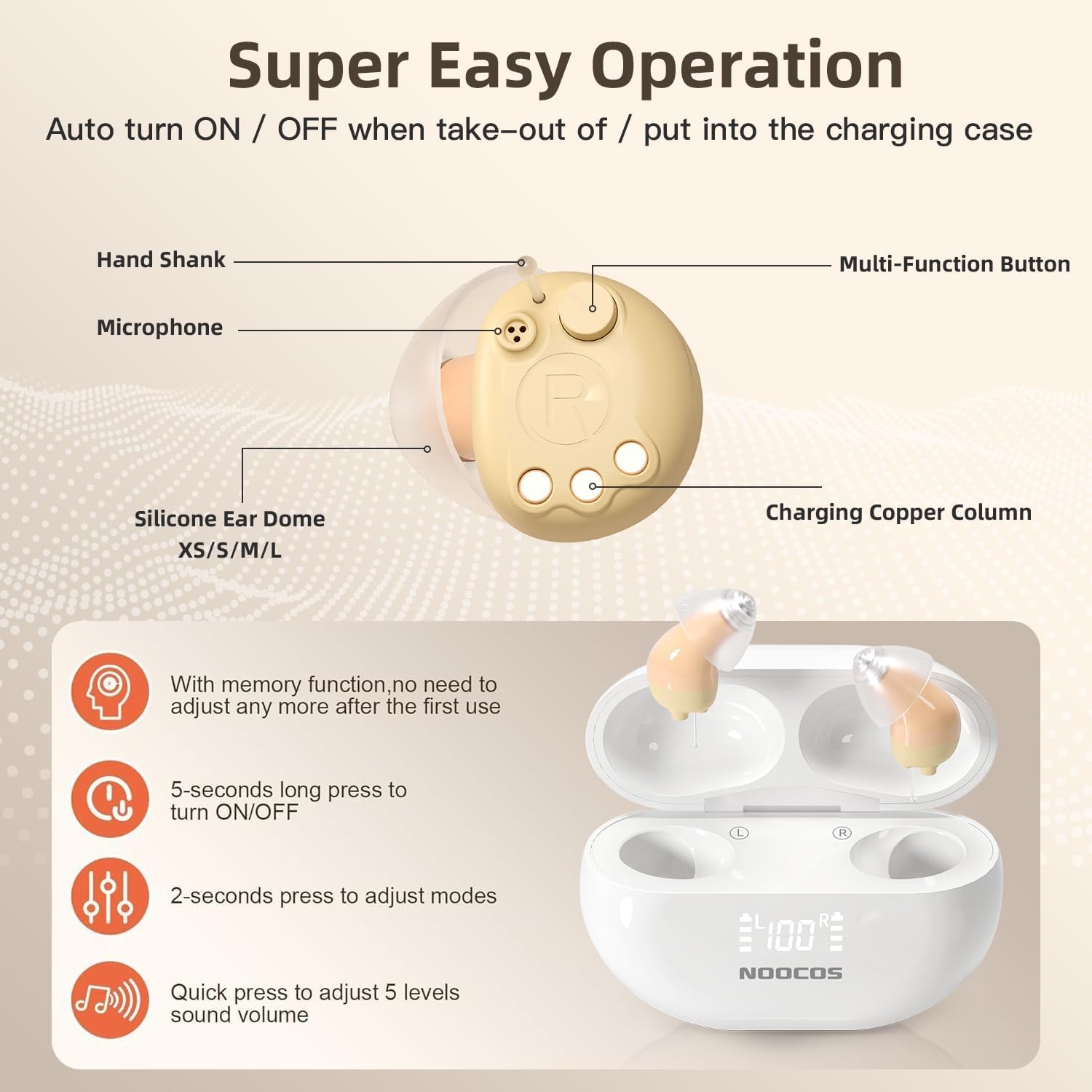 Review: The rechargeable hearing aids were compact, lightweight, and comfortable to wear for extended periods without causing discomfort. The design was discreet, making them nearly invisible when worn. Sound quality was clear, with minimal background noise, but quality sounded that of a phone speaker. The hearing aids had a long battery life, lasting throughout the day on a single charge. The LED charging case was convenient for recharging, adding to the overall practicality of the product.