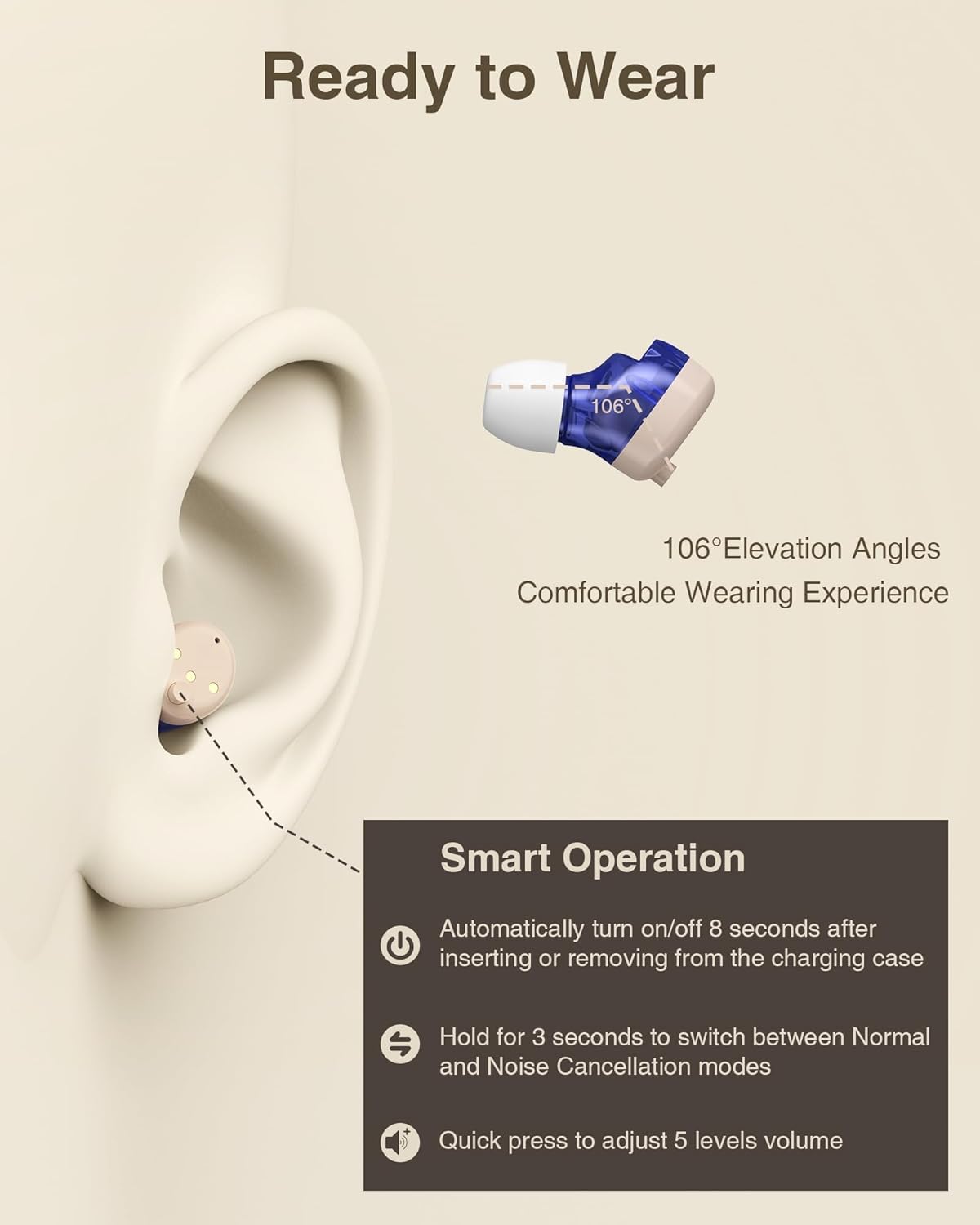 Review: I have been looking at these for quite some time because my husband has been using the old style hearing aids and the batteries constantly need changed on them and they just are not up to par. I ordered these for him and they are amazing, the sound quality is top of the line and I love the fact that you can recharge them so no more buying batteries are trying to find batteries these are such a great invention and he absolutely loves them.