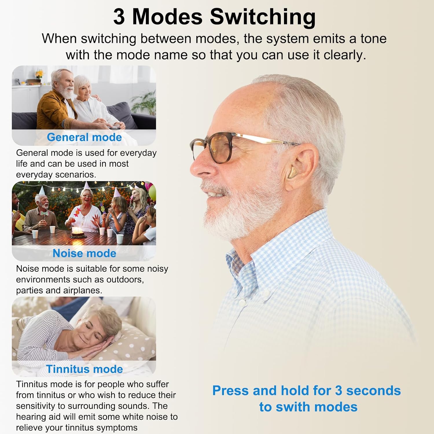 Review: These hearing aids are great helps to my parents. They have crystal clear sound, and the distinct modes cater to various environments seamlessly. They fit comfortably and are easy to recharge. My parents really like them.