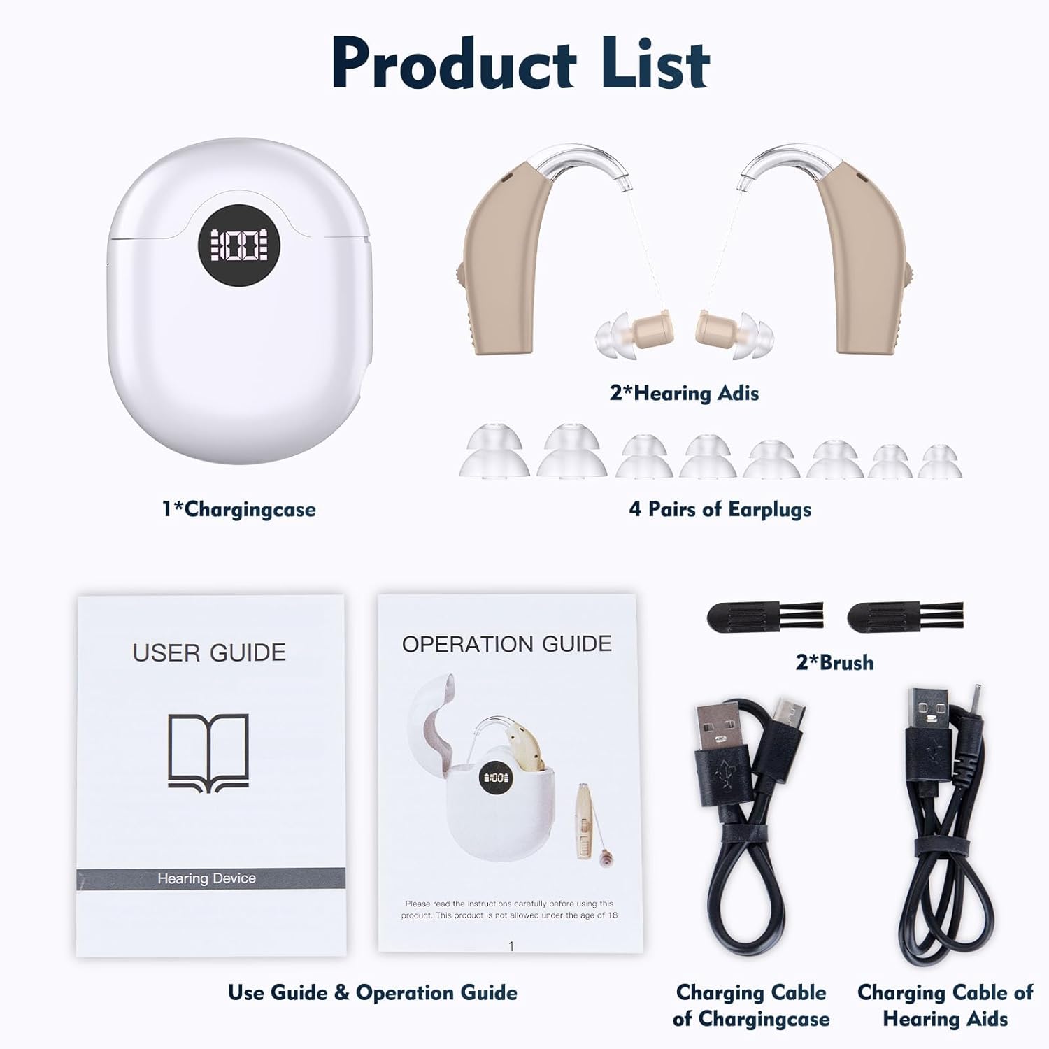 Review: I got these Rechargeable Hearing Aids and I can honestly say that they’ve been working great for me. Even though I’m not a senior, I decided to try them out because I have mild hearing loss. I was really impressed with how small and compact they were. I was a little worried about how they would feel in my ears, but the design is really comfortable. They fit perfectly in my ear and didn’t feel bulky or heavy at all. I also liked that they were beige, so they blended in with my skin and didn’t stand out too much.One thing that stood out to me right away was how easy they were to operate. The key switch button is simple to use, and there’s a little slide for adjusting the volume. This made it really easy for me to find the perfect sound level.One of the best things about these hearing aids is that they’re rechargeable. This is a huge plus because I didn’t want to deal with changing tiny batteries all the time. The hearing aids come with a charging case and two cables, so you have options for how you want to charge them. I usually just put them in the case at night, and they’re ready to go the next day.The charging case is also really convenient because it holds enough power to fully charge the hearing aids three times before it needs to be plugged in. This means I can use the hearing aids for up to 28 hours without worrying about them running out of power. I’ve found that I don’t need to charge them every day, which is great because it makes them feel even more low-maintenance.Another thing I love about these hearing aids is how well they work in noisy places. Before I got them, I always had trouble hearing people in crowded areas like restaurants or family gatherings.But these hearing aids have noise reduction chips that make a huge difference.