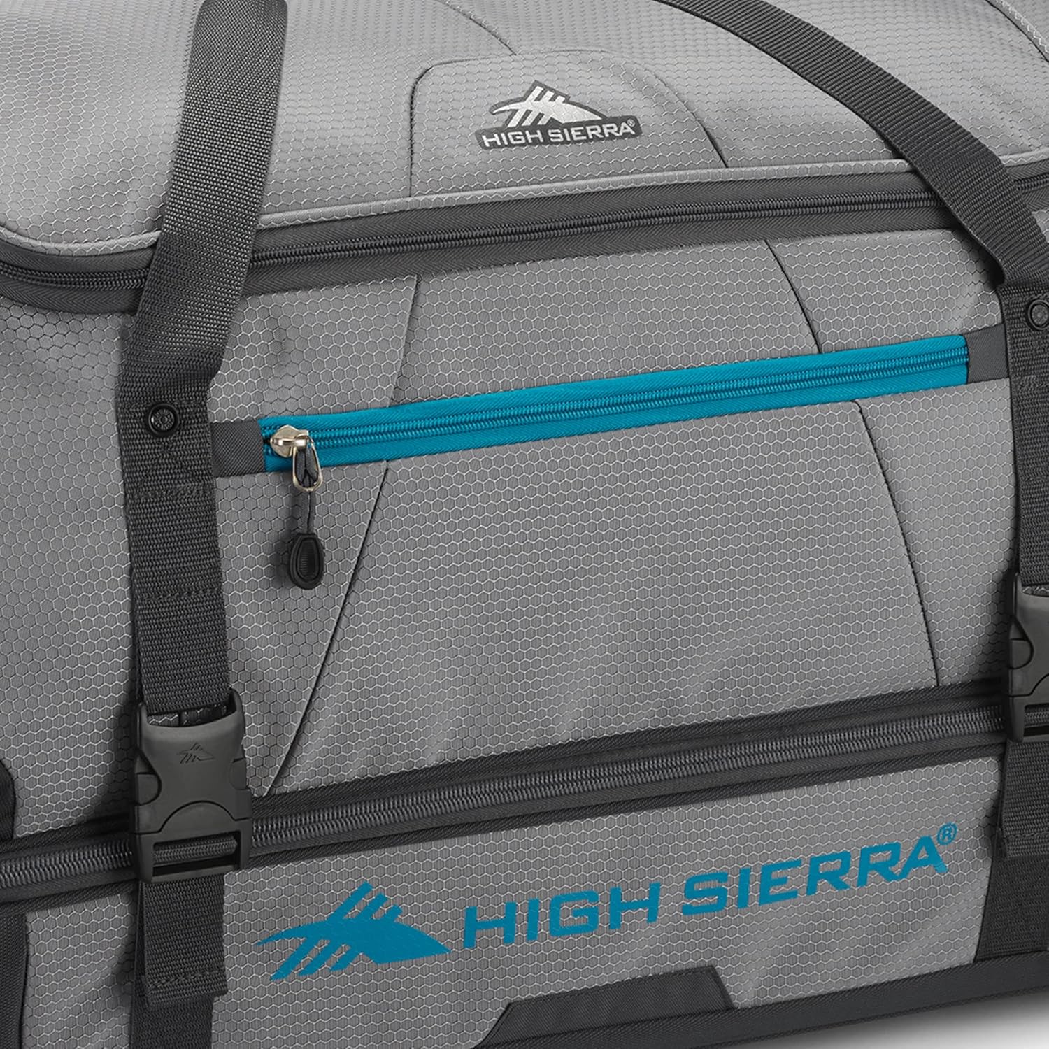 Book your next flight and pack your airplane travel essentials into your trusted Fairlead Wheeled Drop-Bottom Duffel Luggage Bag from High Sierra. Unlike other duffel bags for traveling, this carry-on or checked-in luggage bag is packed with handy features for the traveler in you. This duffle bag offers a variety of convenient attributes for your on-the-go needs, such as its wheels and the telescoping recessed pull handle for better mobility and navigation to brave the airport rush to catch your flight when needed or for a hassle-free time strolling with your luggage in non-airport surfaces. This versatile duffle bag with wheels can be a duffle bag for men or women with its solid color exterior which combines style and functionality. This duffle bag for travel with wheels offers a spacious main compartment for your football gear, football towel, and shoes if you're traveling to compete or for your beach essentials if you're on the way to your tropical paradise vacation. Each travel luggage with wheels showcases a zippered passthrough for the main compartment for superb organization for your travel must-haves. There are also compression straps for extra durability to ensure your luggage and its contents will always be secure. On top of that, this rolling duffle bag with wheels has a molded ID holder as an extra security measure if it gets lost. Upgrade your travel essentials for flying with this High Sierra Fairlead Duffle Bag in Grey and Blue.