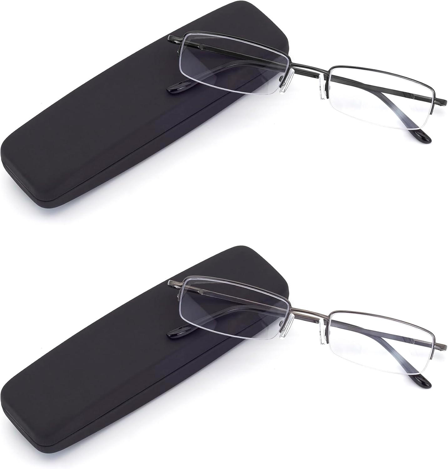 Review: This is my 5th or 6th set of readers. Cheap plastic frames usually break in a year or less. Very few last. Folding readers are good, but not practical for regular use. This is the best metal frame I have tried. The first felt cheap and started to corrode after a year. This one is thin, great for wearing low on your nose when you need to read but also look up regularly. That said, I prefer larger lenses when I am reading a book for hours. This frame has a specific use. Lenses are substantial, not the cheap, thin lenses I would expect at this price point. The case and lens cleaner are a great bonus. I also like how thin the case is compared to others. Easier to fit in a pocket if needed. For reading menus, checking your phone, this is the perfect reader for me.