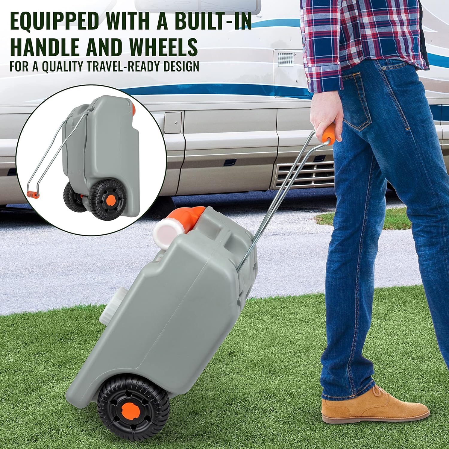 HANDLES FOR EFFORTLESS TRANSPORT | Travel-Friendly Design Takes the Stress, Worry & Time Out of Blackwater Waste Removal! | Collapsible Handle Allows You to Roll the Tote Like a Suitcase, While Built-In Hand Grip Offers Additional Maneuverability for Carrying & Moving Into RV, Camper, Caravan, or Bus Storage