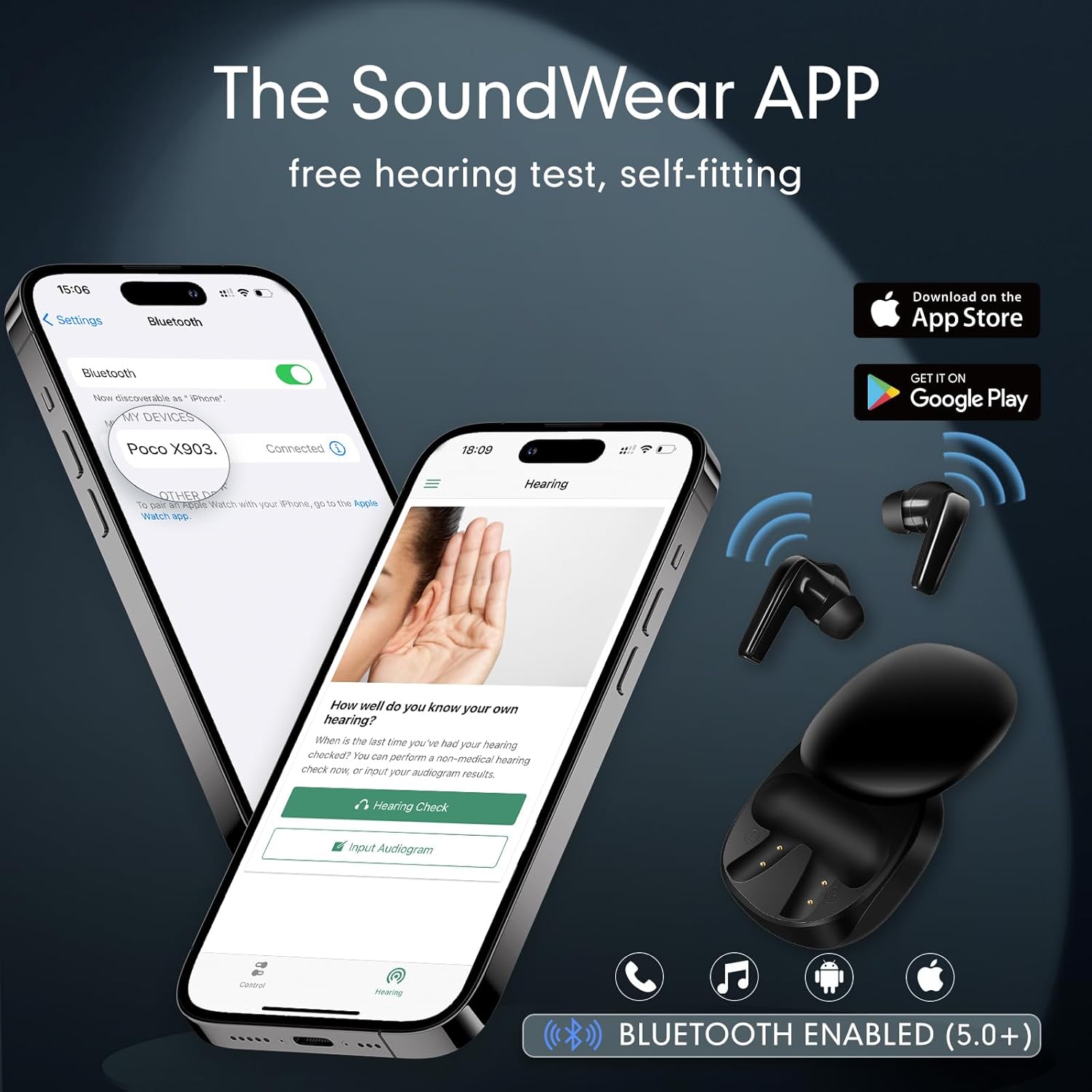 Review: These have a great app, and they are easy to use! The software is a quick download (but wants a lot of permission) and works easily. The volume control has a lot of options, and is easy to use even if your hands don’t work very well.Sound quality was SUPERB! I could hear phone calls again! I could hear the tv and people talking in the other room. I have moderate, just under profound hearing loss.I SO wish the component that fits INSIDE the ear was a little smaller – I have a smaller canal on the right. SO WISH I didn’t have to return!