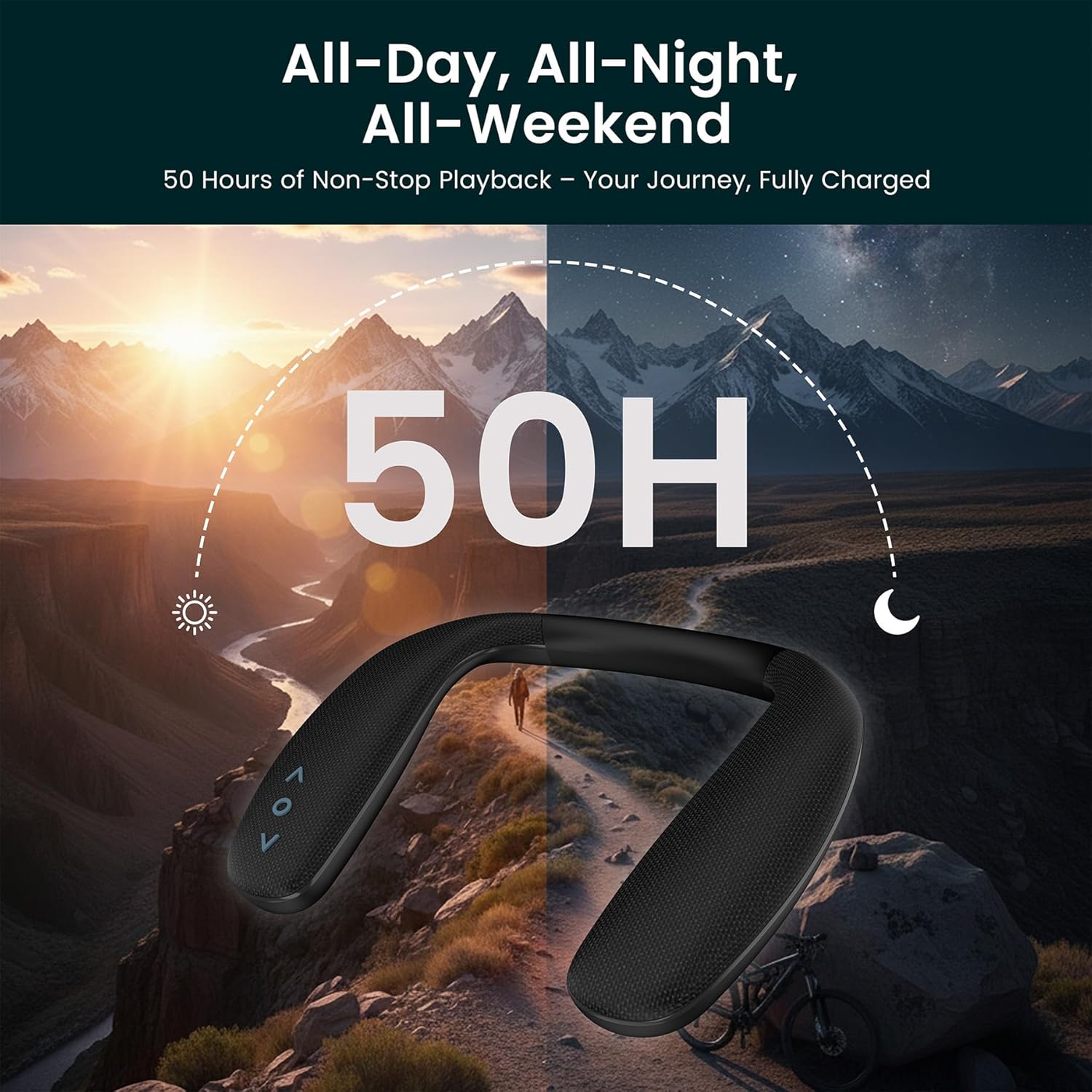 Review: I frequently stay up late and watch tv after everyone has gone to bed. I was getting lots of complaints about the tv being too loud as everyone tried to sleep. Turning the volume down made it difficult for me to hear the sound. I started searching Amazon for a solution , and I found this product. And boy am I happy I went with this! It has solved my problem! I connected my Samsung tv directly to this speaker via Bluetooth. I didn’t even need to use the included transmitter! My tv found the speakers immediately and connected with absolutely no problems. Within about 3 minutes they were working!I find the sound quality absolutely excellent for speakers at this price point. Nice, clear sound! Slide these around your neck and you’ll be amazed at the stereo sound. They have just the right amount of bass and treble. The build quality feels solid, and the battery life has been just as advertised. It would be hard for me to believe that a name brand speaker could sound any better than these! I even used these while they were plugged in using the USB-C cord and they work just as well this way!The speakers aim the sound up at each of your ears. Yes, people in the room would probably be able to hear a little bit of sound, but not enough to keep someone awake if they’re sleeping on the couch next to you. You won’t need to blast the volume to hear these speakers because you’re wearing these around your neck, just a few inches below your ears. They are very well designed!I really and truly LOVE this speaker! I will be using these nightly. These would be great for anyone who wants to listen to the television (or any Bluetooth device) without disturbing others. And I can absolutely see how these would be great for those with hearing difficulties. This was a great purchase for me, and I just had to share my thoughts with you! Thanks for reading!