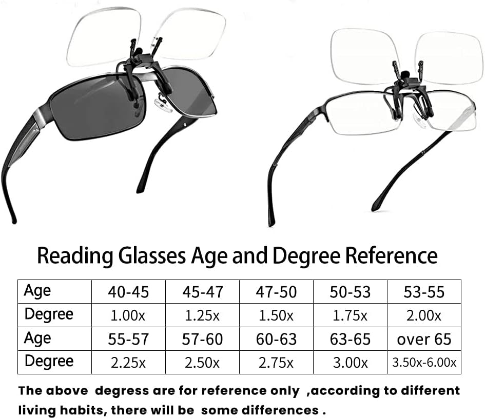 Review: These clip-ons work great and were exactly what I needed. I even bought them twice. They are a little bulky and the extra heft sometimes causes my glasses to slide down my nose. But I can live with that. The real issue is the durability of the clip, itself. On two pairs of these, the clip has broken within a month or two. Broken maybe isn’t the right word. The pieces pop apart. I was able to snap them back together, but in both cases, the readers were never the same. Once they come apart they start a cycle of coming apart more and more often. It just becomes too annoying. I am now looking for a pair that don’t flip up so they don’t have these fragile clips.