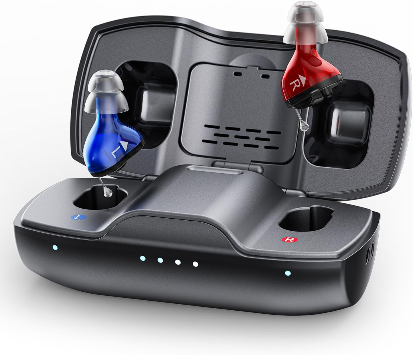 Review: I have purchased several sets of hearing aids on Amazon over the last year trying to help my elderly father regain some level of hearing again. Some were ok but most were waste of money. Thankfully I decided to spend a little more and purchase these iBstone Nova aids. They fit in his ear perfectly with no buzzing, no hi pitched squealing. Charging is easy and he loves the level of volume control he has and how easy it is to set. He also loves the fact that it doesnt amplify background noises. He can also tell the direction of sound and can hear the tv normally again. Thank you iBstone Nova!!