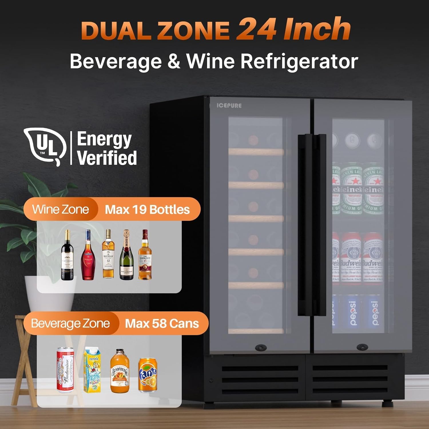 ICEPURE Wine and Beverage Refrigerator 24 Inch, Dual Zone Wi…