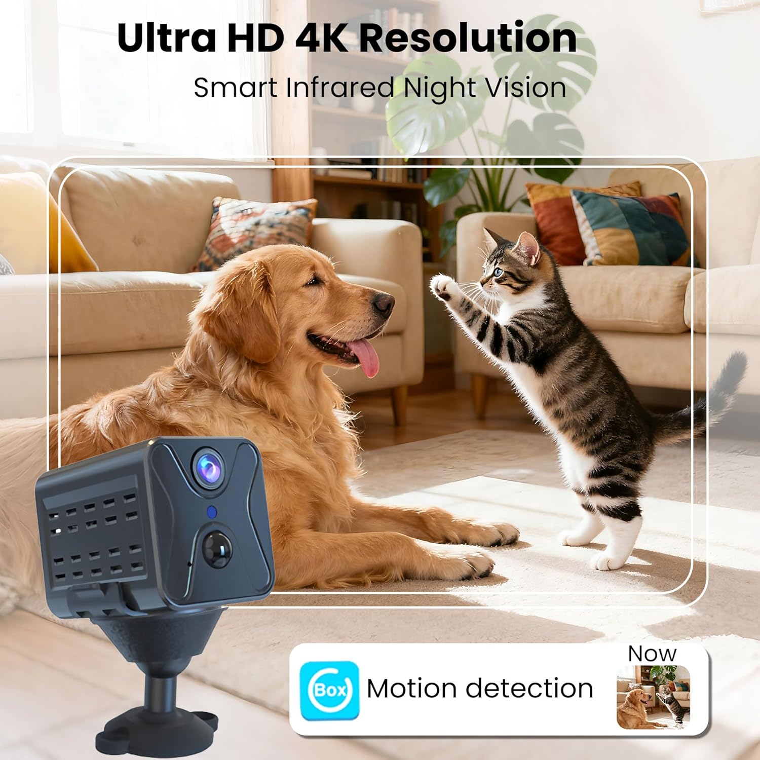 4K camera and Infrared Night Vision: This wireless Mini camera provides a High Video Quality and image with a wide 160-degree angle view. Regarding night vision,this home security camera offers clear visibility at all times, day or night. The included app allows for easy access to recorded video from anywhere, anytime.