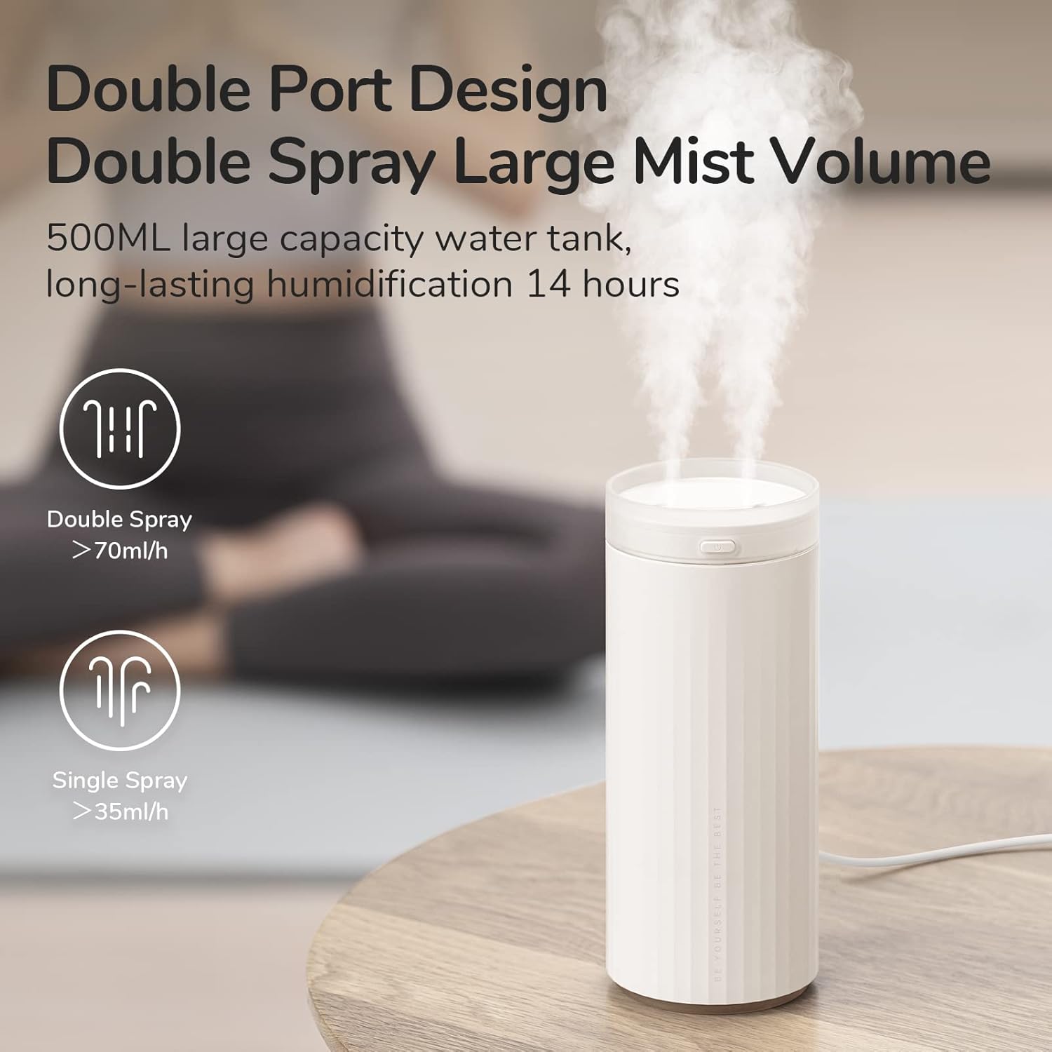 Double Port Design, Double Spray Large Mist Volume: JISULIFE personal humidifier is designed with double nozzles, intermittent single spray >35ml/h, continuous double spray >70ml/h, self-adjusting humidity, effective humidification rate up to 98%, faster relief of dryness