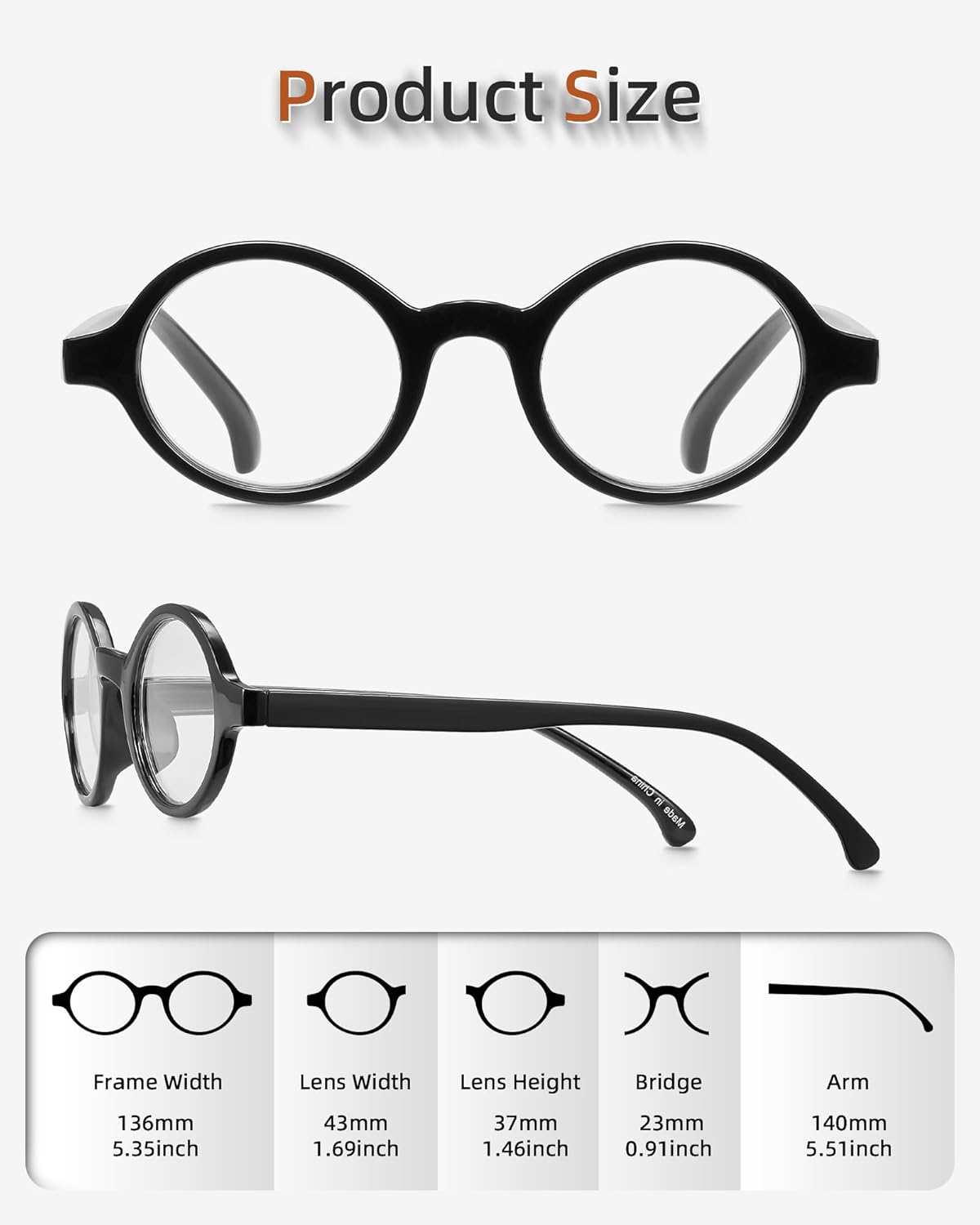 Review: Very pleased with my round glasses.These are hinged but not so tight that they hurt my head. They are lightweight and the exact strength that they advertise. I have a choice of frame colors.