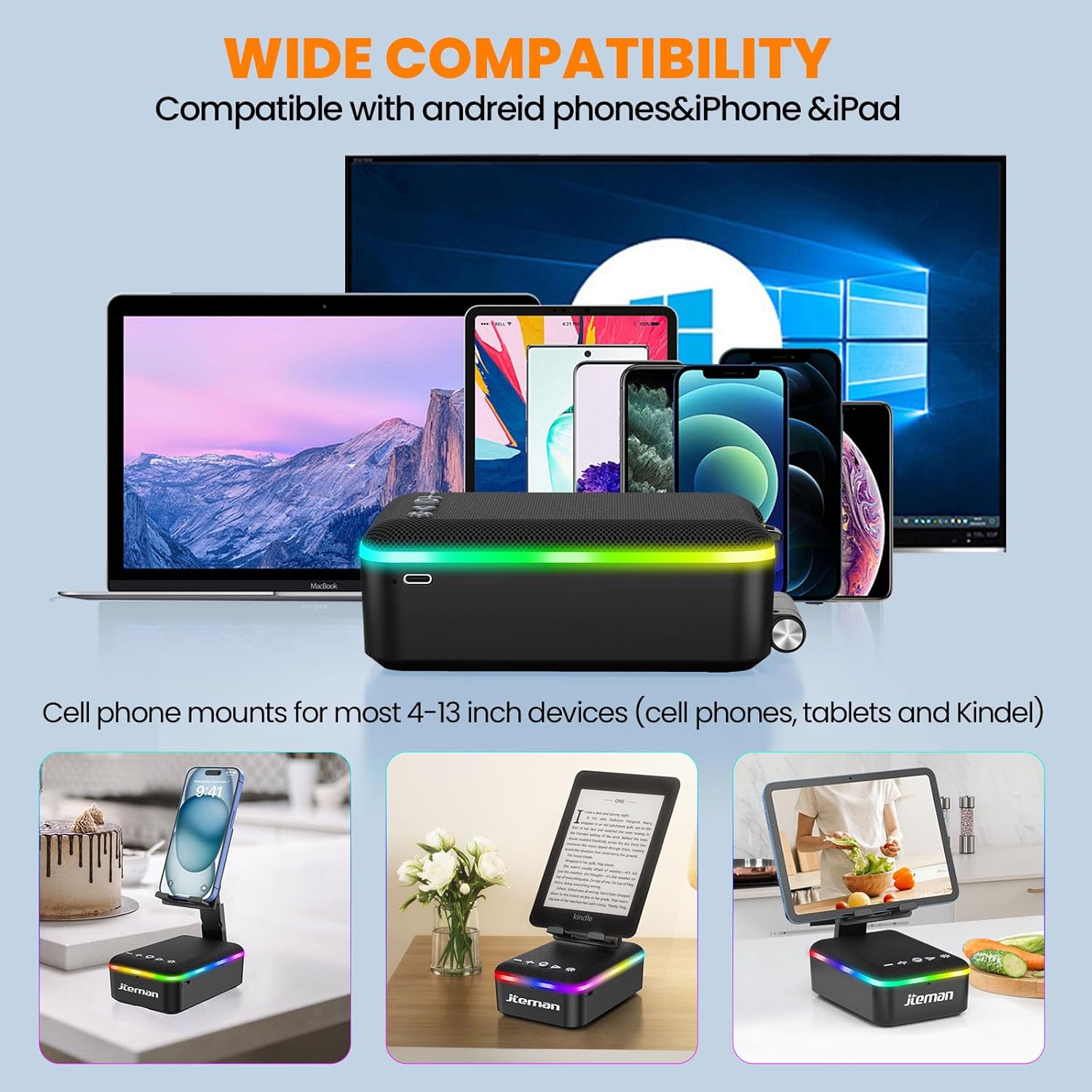 Newly upgraded multifunctional gadget: JTEMAN multifunctional device combines a portable Bluetooth speaker, cell phone stand, LED light, lanyard and built-in microphone. Whether you're indoors or outdoors, the detachable lanyard ensures it's easy to carry and perfect for all your adventures. It also brings great convenience for watching videos and making hands-free calls, Ideal birthday gift for women men!