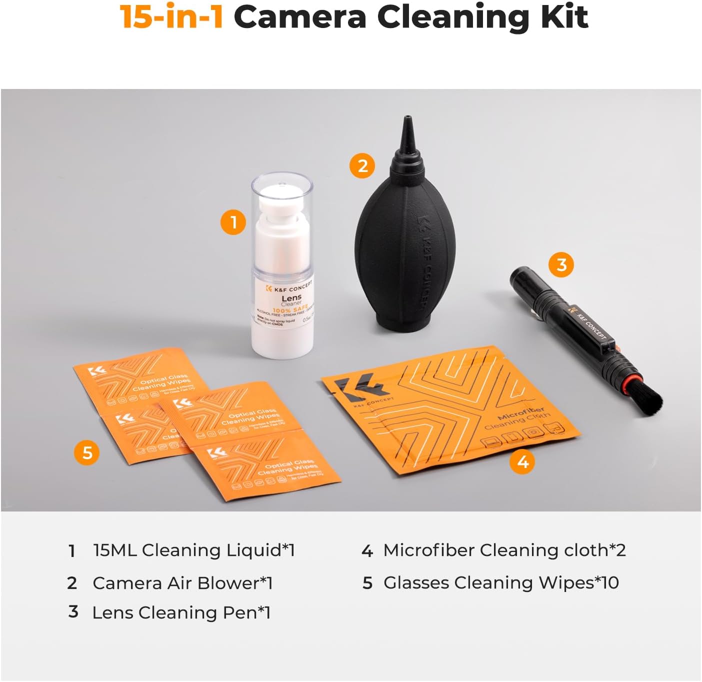 Review: I’m super impressed with the KF 10-in-1 Cleaning Kit — it’s been a total game-changer for keeping all my gear spotless. Everything from the brush to the microfiber cloths feels premium. The air blower removes dust from delicate crevices without scratching, the lens pen handles smudges perfectly, and the cleaning solution works great without leaving streaks. Plus, it’s compact and has a dedicated place for every tool, so nothing ever gets lost. Solid value for photographers, phone-geeks, or anyone who cares about clean gear. Highly recommend!