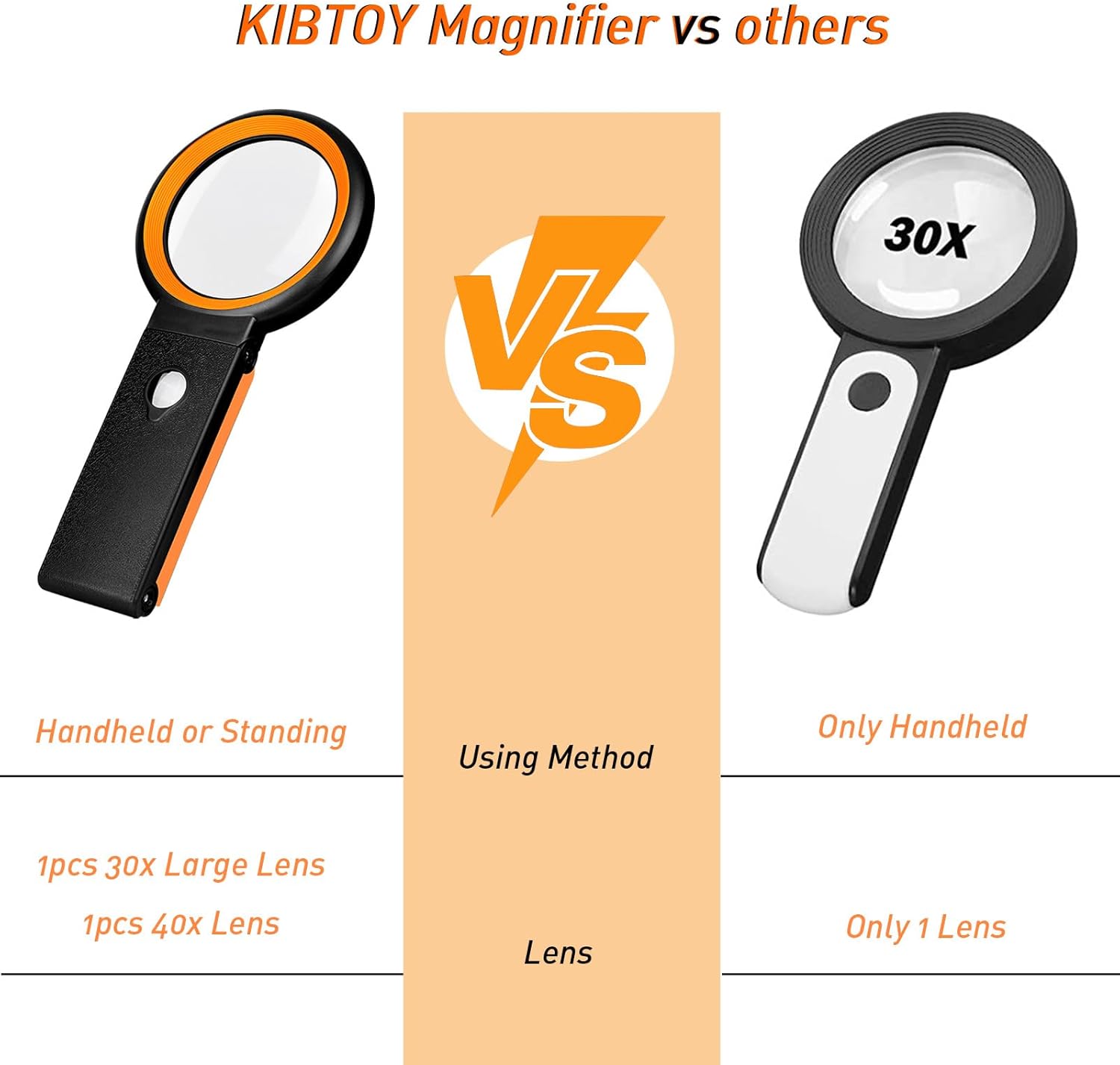 Title: Highly Recommend KIBTOY 10X Handheld or Stand Magnifying Glass with Bright Lights