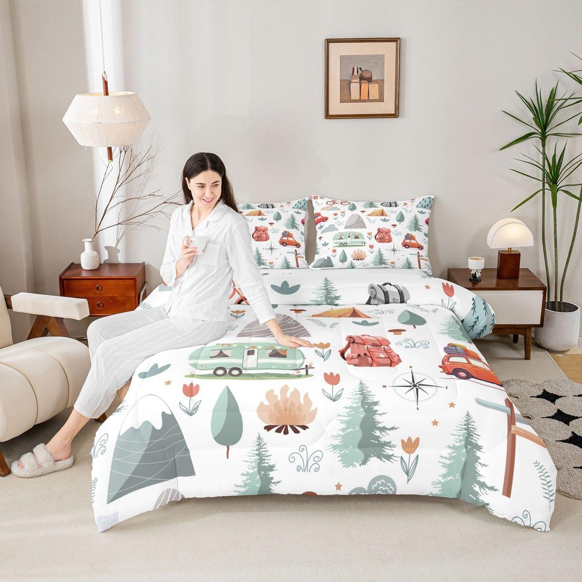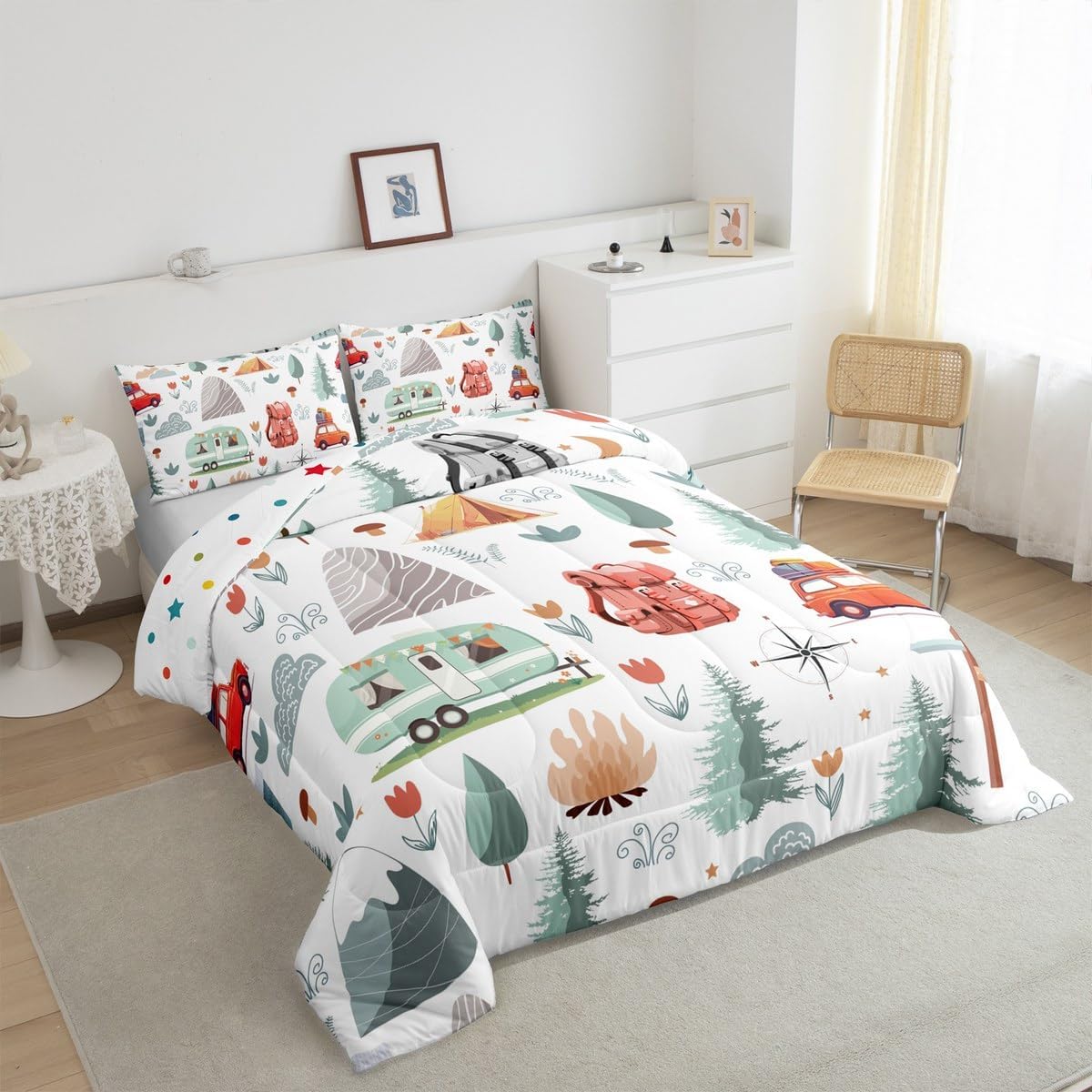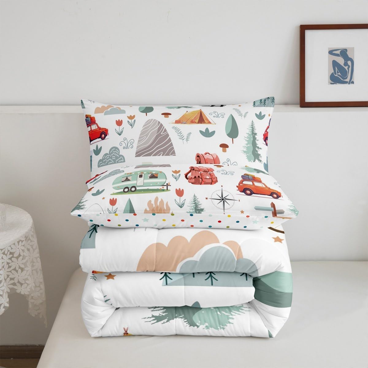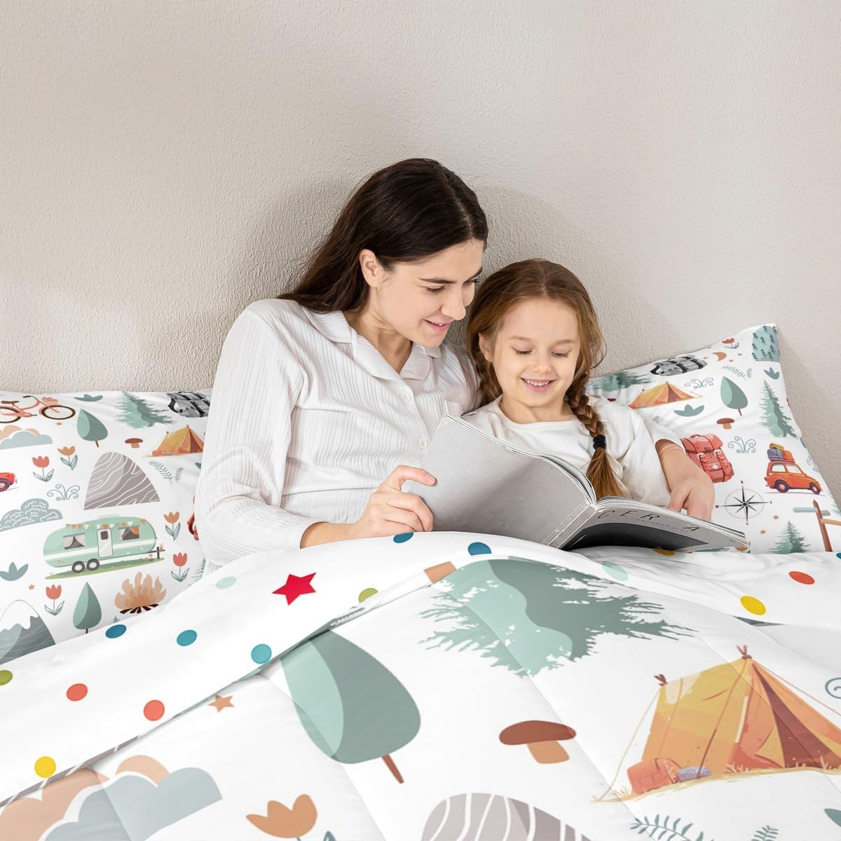 Kids Camper Theme Comforter Set Twin 2Pcs, Happy Camping Bed…