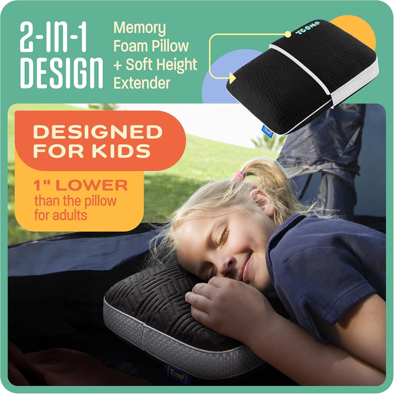 Kids Camping Pillow: Dual-Cover Memory Foam Small Pillow; Me…