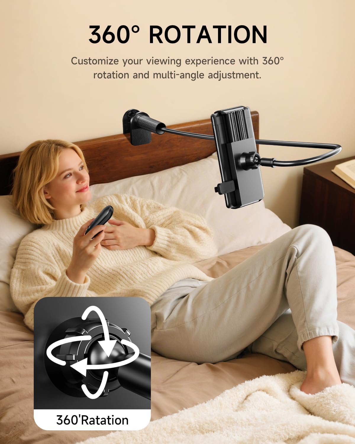 Ergonomic Tablet Holder: The adjustable gooseneck design provides 360° rotation and optimal viewing angles for comfortable reading in bed, on the desk, or beside your bedside table