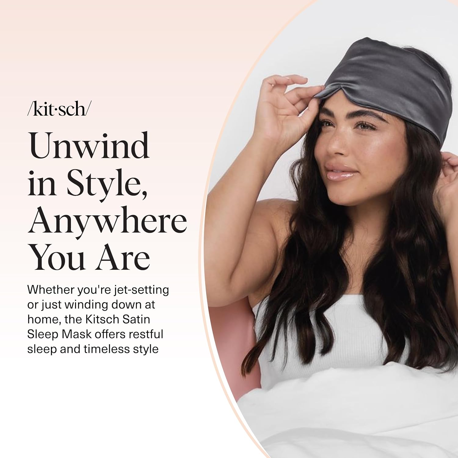 ELEVATE YOUR BEAUTY REST: Upgrade your nighttime routine with the Kitsch Charcoal Satin sleep mask. Crafted with ultra-soft satin, this luxurious silk sleep mask alternative delivers next-level comfort while protecting delicate skin. Whether you’re looking for premium sleep masks for women or a comfortable sleep mask for men, this elegant design enhances every beauty ritual.
