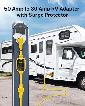 Kohree RV Adapter with surge protector for convenient power connection and surge protection to your 30/50 Amp RV at the campground.
