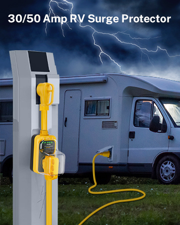 Our RV Surge Protector protect your circuits from sudden power surges of up to 8,000 joules from lightning stroke during thunderstorms.