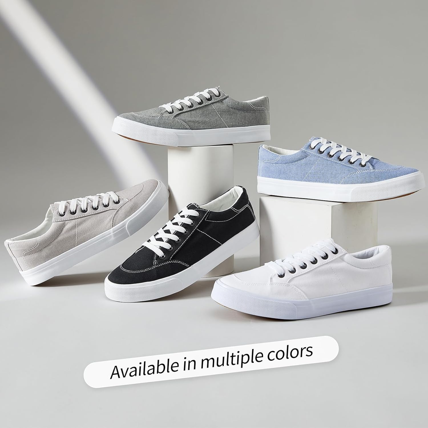kufeiti Men’s Canvas White Black Sneakers Shoes Low Top Lace…