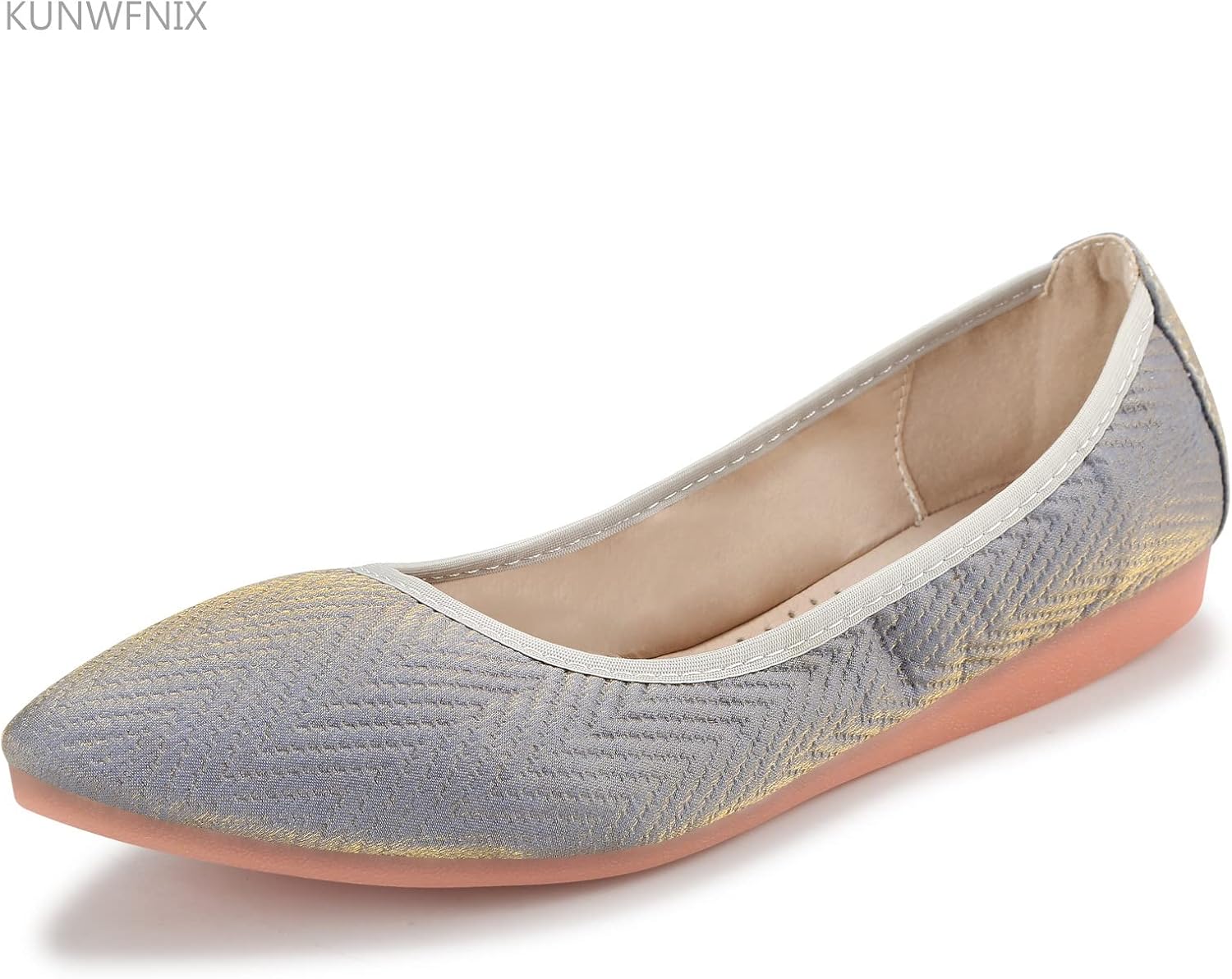 KUNWFNIX Women's Ballet Flats Beige Wedding Ballerina Shoes Foldable Sparkly Comfort Slip on Flat Shoes