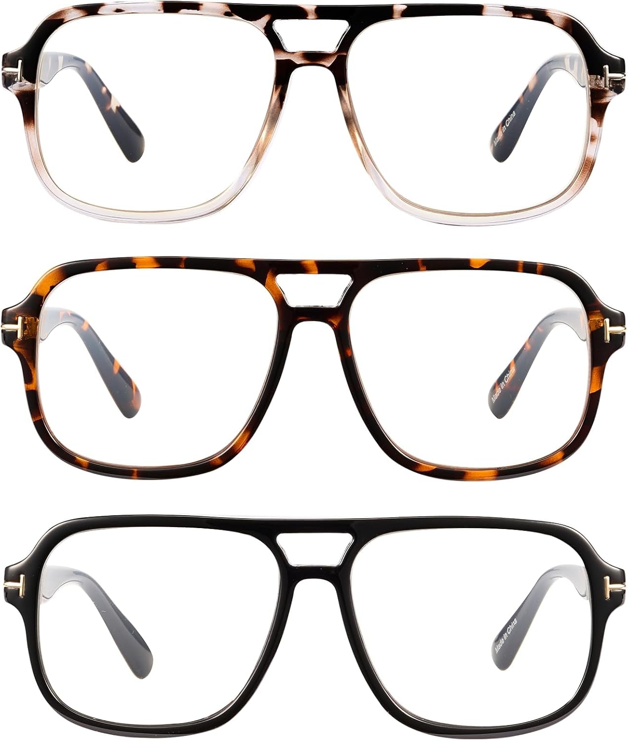 LADEESSE 3 Pack Reading Glasses for Women/Men,Oversized Retro Aviator Blue Light…