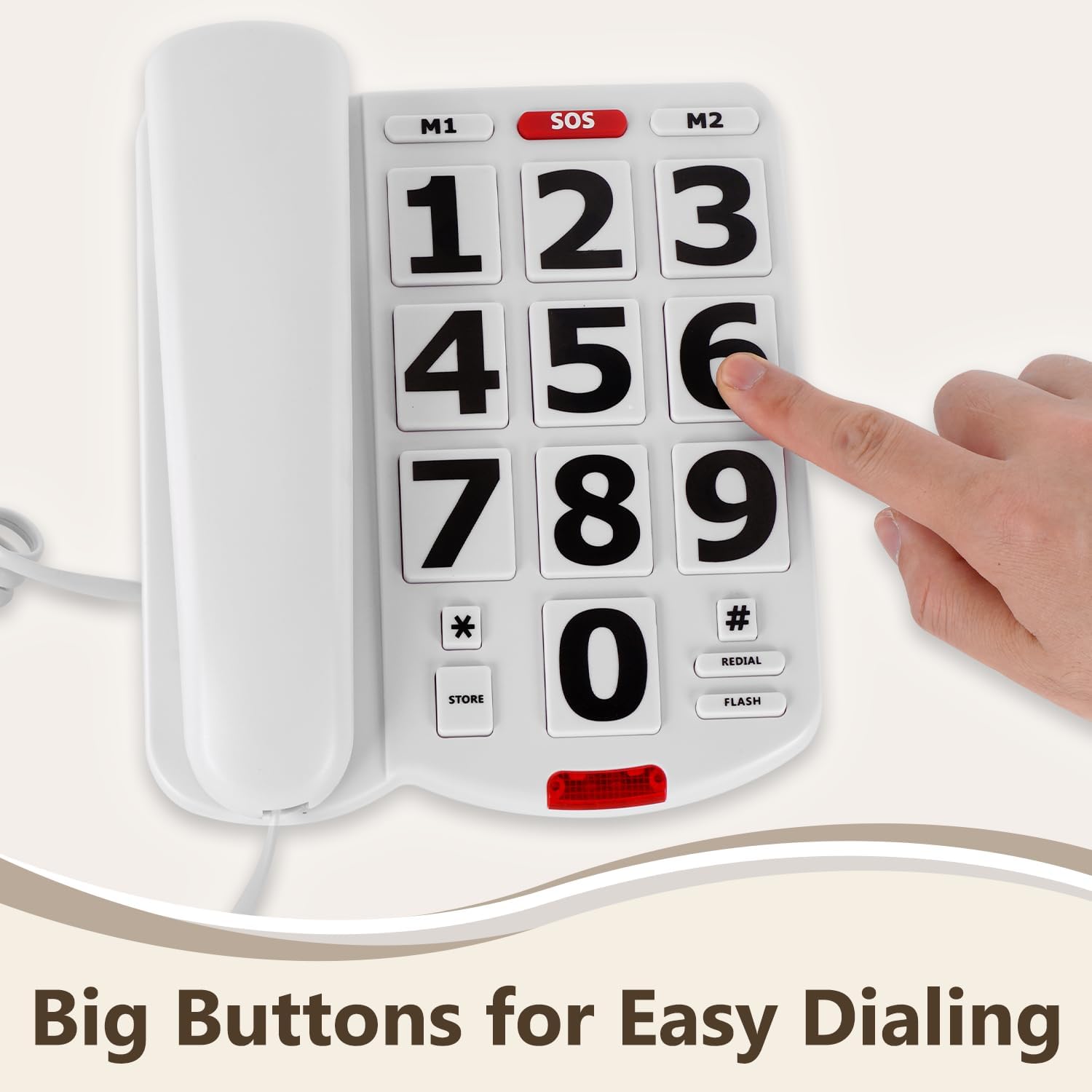 Review: This landline phone is absolutely perfect for seniors, and my grandmother truly loves it. The big buttons are easy to see and press, which makes dialing simple and stress-free. The one-touch dialing buttons are incredibly convenient for frequently called numbers, and the SOS button gives both her and our family extra peace of mind. The loud ringer is a huge plus—it’s clear and easy to hear from another room, so she never misses a call. The phone is very straightforward to use with no complicated menus, which is exactly what we were looking for. Setup was quick and easy, and the corded design means it’s always reliable and ready to use. The sound quality is clear, and the phone feels sturdy and well made. Overall, this is an excellent phone for elderly users, and I would highly recommend it to anyone looking for a simple, dependable landline phone for a loved one.