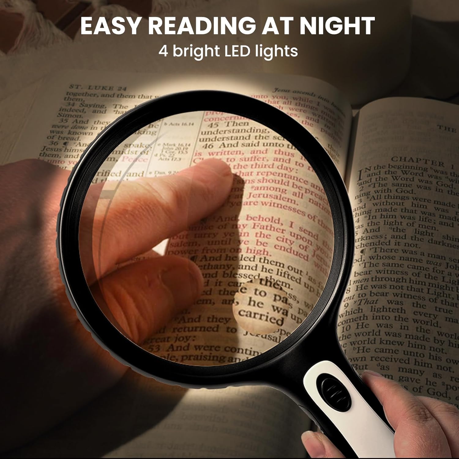 Review: The magnification is great and the light is bright…the challenge is that this Magnifying glass is almost too large…it takes up space on a desk…and is not that easy for older seniors to hold. Still, it does it job beautifully and the light is a real plus.