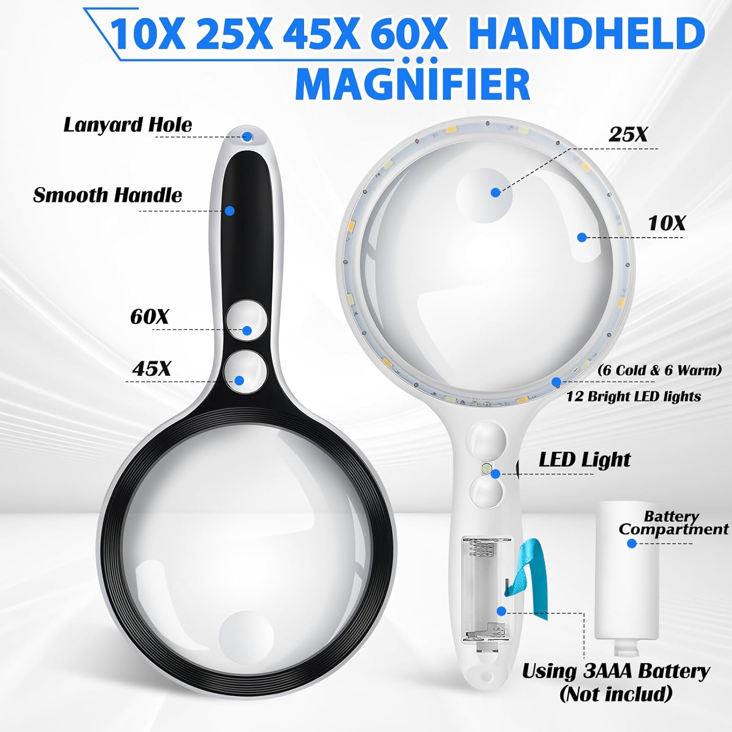 , Health & Household > Medical Supplies & Equipment > Mobility & Daily Living Aids > Visual Impairment Aids > Magnifiers, #Large #Magnifying #Glass #Lights10X #25X #45X #60X #Handheld #Lighted #Magnifier #5..,