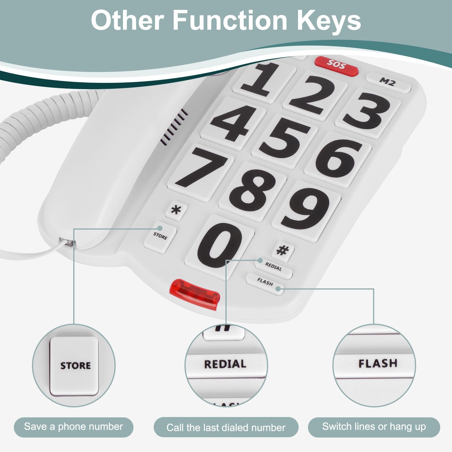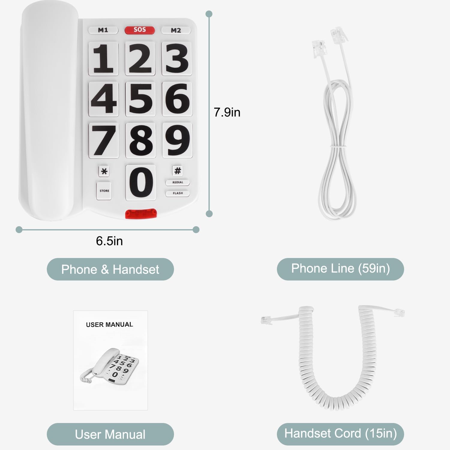 , Health & Household > Medical Supplies & Equipment > Mobility & Daily Living Aids > Visual Impairment Aids > Big Button & Amplified Telephones, #Lativu #Landline #Phones #Seniors #Simple #Big #Button #Phone #Seniors #White #T..,